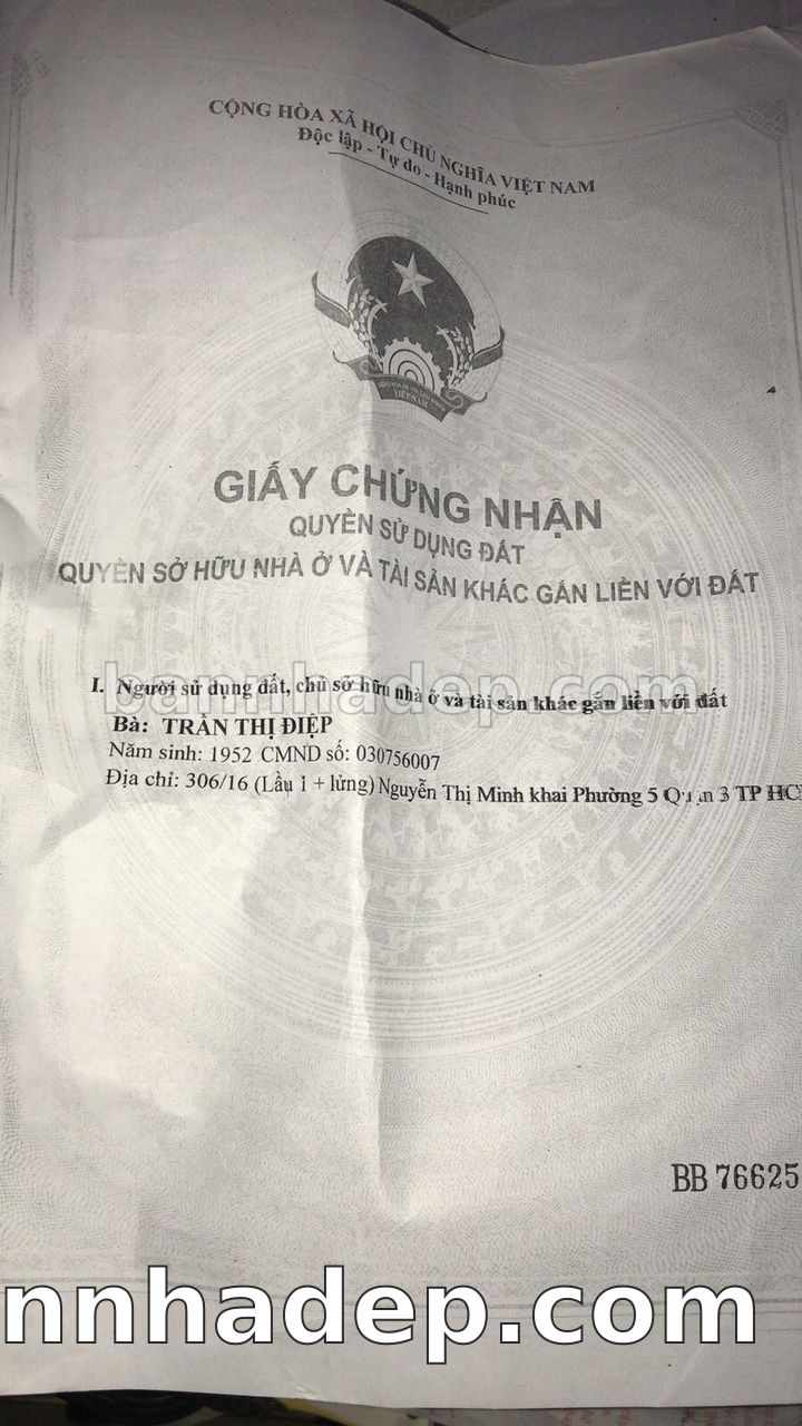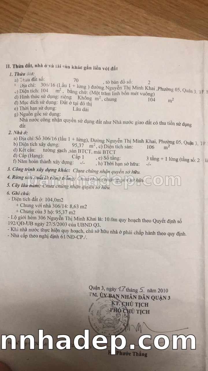 Bán nhà 306/16 Nguyễn Thị Minh Khai phường 05 quận 3