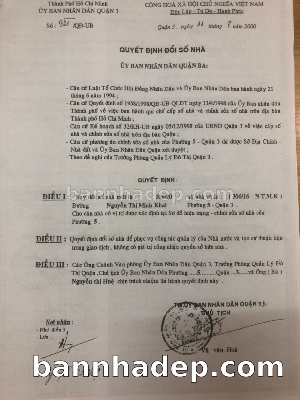 Địa chỉ: 306/16 Nguyễn Thị Minh Khai phường 05 quận 3