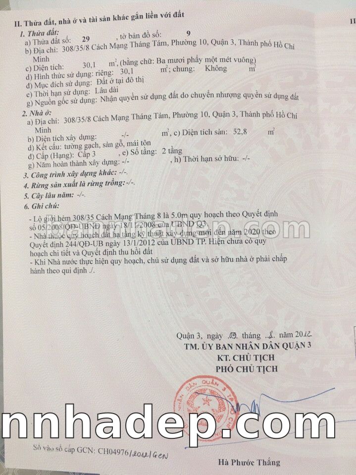 BÁN NHÀ Đường hẻm Số 308/35/8 Cách mạng tháng 8 phường 01 quận 3 TP. Hồ Chí Minh – GẦN CÔNG VIÊN GIẢI TRÍ – GIÁ TỐT Cần bán gấp nhà Đường hẻm tại Số 308/35/8 Cách mạng tháng 8 phường 01 quận 3 TP. Hồ Chí Minh – tiềm năng kinh doanh cao. Thông tin chi tiết: • Địa chỉ: Số 308/35/8 Cách mạng tháng 8 phường 01 quận 3 TP. Hồ Chí Minh • Diện tích: như trong sổ, không gian lý tưởng • Vị trí: Đường hẻm đường Cách mạng tháng 8, gần trung tâm thương mại lớn, khu vực sầm uất, tiềm năng kinh doanh cao • Pháp lý: Sổ hồng riêng, không tranh chấp, sẵn sàng giao dịch • Giá bán: Thoả Thuận (còn thương lượng với khách thiện chí) Lợi thế đặc biệt: • Vị trí trung tâm Quận 3 • Giao thông thuận tiện, kết nối các quận trung tâm • Phù hợp kinh doanh dài hạn, ổn định • Khu vực sầm uất, tiềm năng kinh doanh tốt