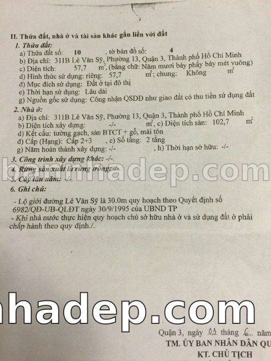 BÁN NHÀ Mặt tiền Số 311B Lê Văn Sỹ phường 01 quận 3 TP. Hồ Chí Minh – GẦN CÔNG VIÊN GIẢI TRÍ – GIÁ TỐT Cần bán gấp nhà Mặt tiền tại Số 311B Lê Văn Sỹ phường 01 quận 3 TP. Hồ Chí Minh – tiềm năng kinh doanh cao. Thông tin chi tiết: • Địa chỉ: Số 311B Lê Văn Sỹ phường 01 quận 3 TP. Hồ Chí Minh • Diện tích: như trong sổ, không gian lý tưởng • Vị trí: Mặt tiền đường Lê Văn Sỹ, gần trung tâm thương mại lớn, khu vực sầm uất, tiềm năng kinh doanh cao • Pháp lý: Sổ hồng riêng, không tranh chấp, sẵn sàng giao dịch • Giá bán: Thoả Thuận (còn thương lượng với khách thiện chí) Lợi thế đặc biệt: • Vị trí trung tâm Quận 3 • Giao thông thuận tiện, kết nối các quận trung tâm • Phù hợp kinh doanh dài hạn, ổn định • Khu vực sầm uất, tiềm năng kinh doanh tốt