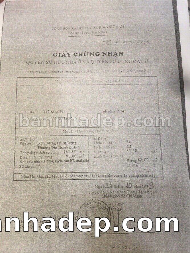 Bán nhà 315 Lý Tự Trọng phường Bến Thành quận 1