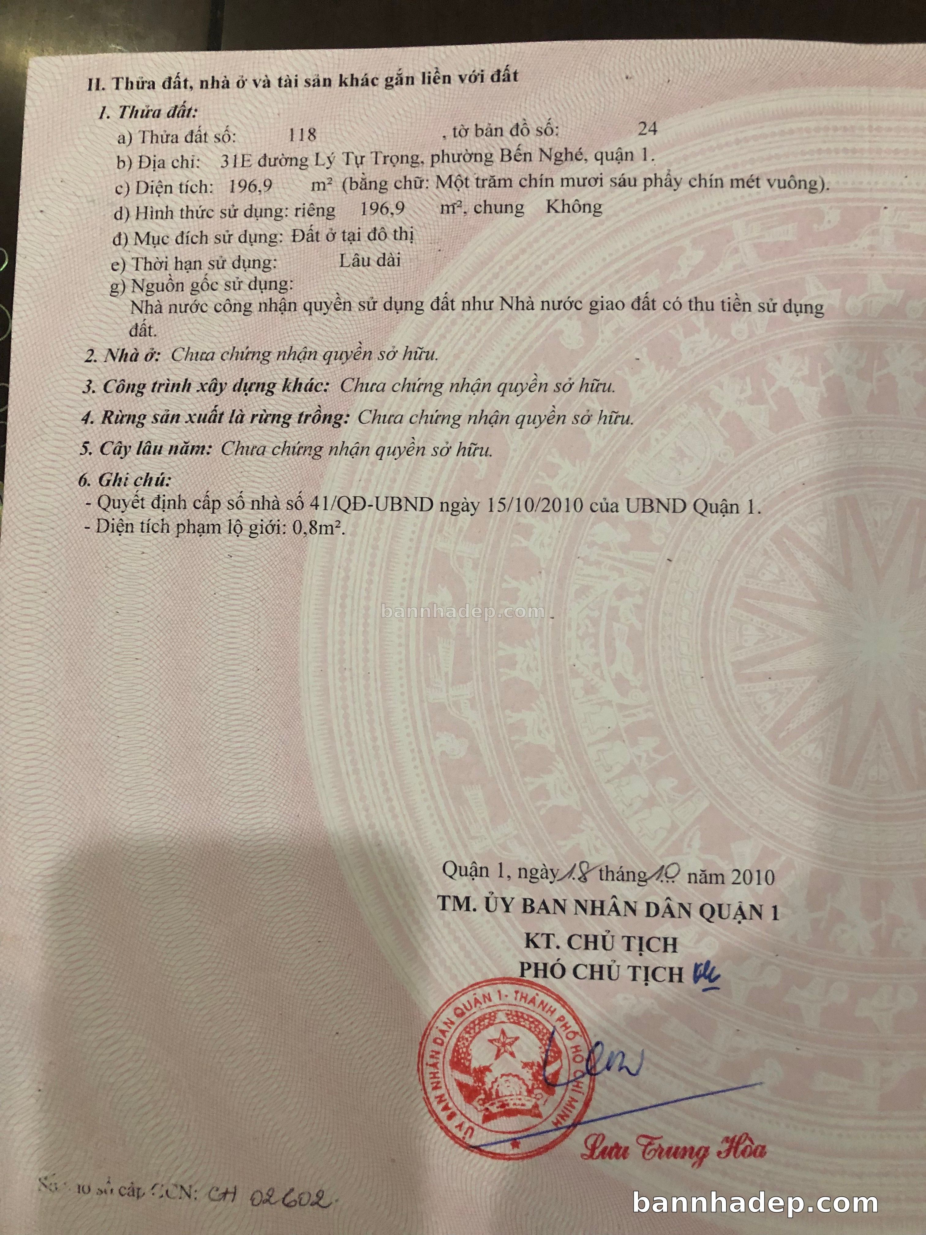 BÁN NHÀ Mặt tiền Số 31E Lý Tự Trọng phường Bến Nghé quận 1 TP. Hồ Chí Minh – GẦN CÔNG VIÊN GIẢI TRÍ – GIÁ TỐT Cần bán gấp nhà Mặt tiền tại Số 31E Lý Tự Trọng phường Bến Nghé quận 1 TP. Hồ Chí Minh – tiềm năng kinh doanh cao. Thông tin chi tiết: • Địa chỉ: Số 31E Lý Tự Trọng phường Bến Nghé quận 1 TP. Hồ Chí Minh • Diện tích: như trong sổ, không gian lý tưởng • Vị trí: Mặt tiền đường Lý Tự Trọng, gần trung tâm thương mại lớn, khu vực sầm uất, tiềm năng kinh doanh cao • Pháp lý: Sổ hồng riêng, không tranh chấp, sẵn sàng giao dịch • Giá bán: Thoả Thuận (còn thương lượng với khách thiện chí) Lợi thế đặc biệt: • Vị trí trung tâm Quận 1 • Giao thông thuận tiện, kết nối các quận trung tâm • Phù hợp kinh doanh dài hạn, ổn định • Khu vực sầm uất, tiềm năng kinh doanh tốt
