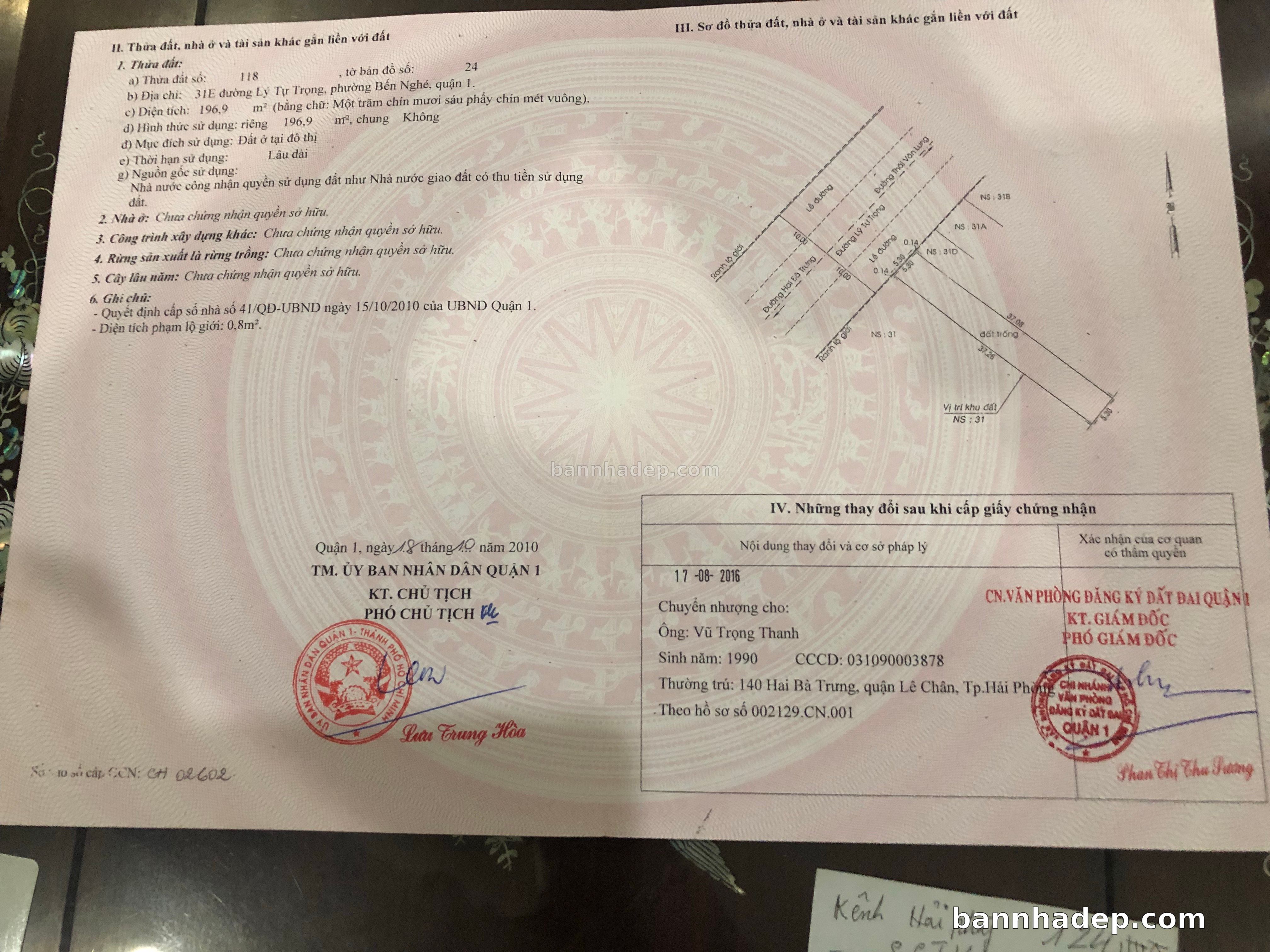 Bán nhà 31E Lý Tự Trọng phường Bến Nghé quận 1