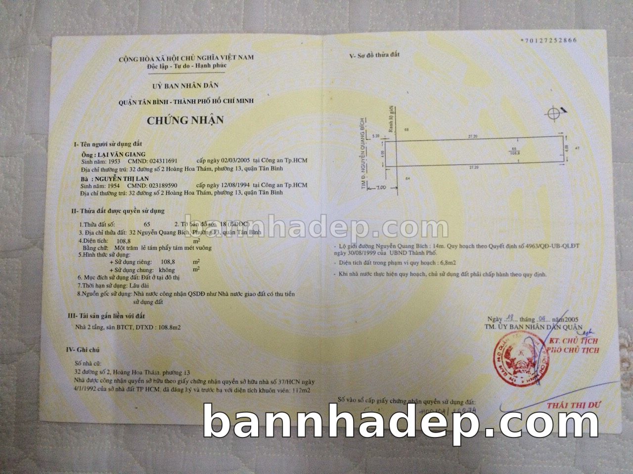 Bán nhà 32 Nguyễn Quang Bích phường 01 quận Tân Bình