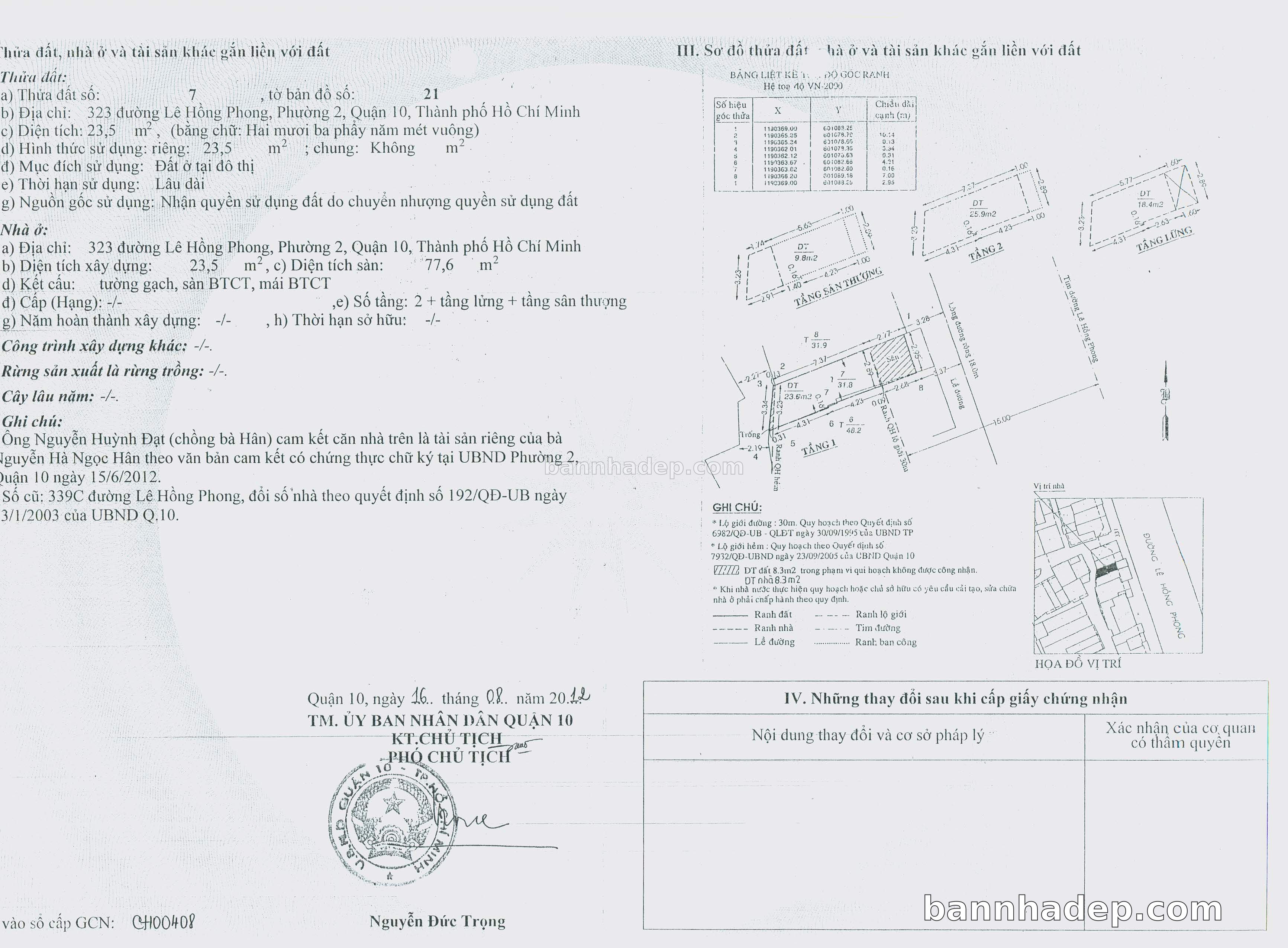 BÁN NHÀ Mặt tiền Số 323 Lê Hồng Phong phường 02 quận 10 TP. Hồ Chí Minh – GẦN CÔNG VIÊN GIẢI TRÍ – GIÁ TỐT Cần bán gấp nhà Mặt tiền tại Số 323 Lê Hồng Phong phường 02 quận 10 TP. Hồ Chí Minh – tiềm năng kinh doanh cao. Thông tin chi tiết: • Địa chỉ: Số 323 Lê Hồng Phong phường 02 quận 10 TP. Hồ Chí Minh • Diện tích: như trong sổ, không gian lý tưởng • Vị trí: Mặt tiền đường Lê Hồng Phong, gần trung tâm thương mại lớn, khu vực sầm uất, tiềm năng kinh doanh cao • Pháp lý: Sổ hồng riêng, không tranh chấp, sẵn sàng giao dịch • Giá bán: Thoả Thuận (còn thương lượng với khách thiện chí) Lợi thế đặc biệt: • Vị trí trung tâm Quận 10 • Giao thông thuận tiện, kết nối các quận trung tâm • Phù hợp kinh doanh dài hạn, ổn định • Khu vực sầm uất, tiềm năng kinh doanh tốt