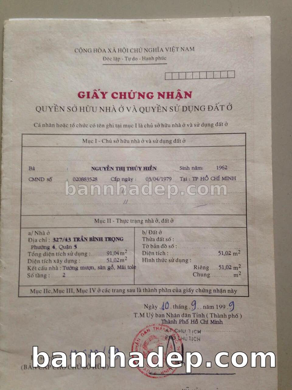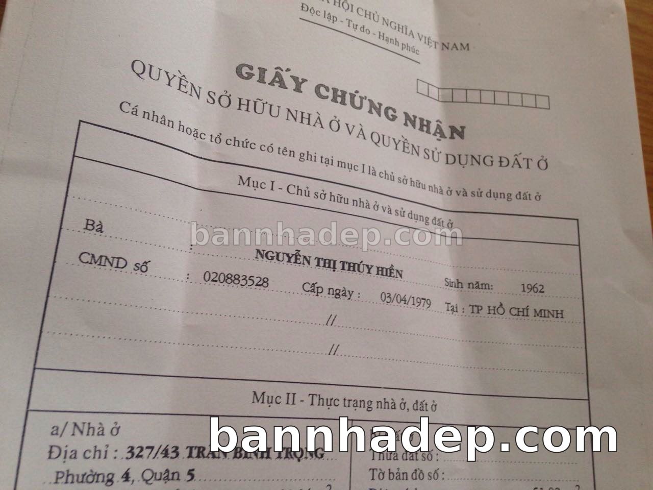 BÁN NHÀ Đường hẻm Số 327/43 Trần Bình Trọng phường 04 quận 5 TP. Hồ Chí Minh – GẦN CÔNG VIÊN GIẢI TRÍ – GIÁ TỐT Cần bán gấp nhà Đường hẻm tại Số 327/43 Trần Bình Trọng phường 04 quận 5 TP. Hồ Chí Minh – tiềm năng kinh doanh cao. Thông tin chi tiết: • Địa chỉ: Số 327/43 Trần Bình Trọng phường 04 quận 5 TP. Hồ Chí Minh • Diện tích: như trong sổ, không gian lý tưởng • Vị trí: Đường hẻm đường Trần Bình Trọng, gần trung tâm thương mại lớn, khu vực sầm uất, tiềm năng kinh doanh cao • Pháp lý: Sổ hồng riêng, không tranh chấp, sẵn sàng giao dịch • Giá bán: Thoả Thuận (còn thương lượng với khách thiện chí) Lợi thế đặc biệt: • Vị trí trung tâm Quận 5 • Giao thông thuận tiện, kết nối các quận trung tâm • Phù hợp kinh doanh dài hạn, ổn định • Khu vực sầm uất, tiềm năng kinh doanh tốt