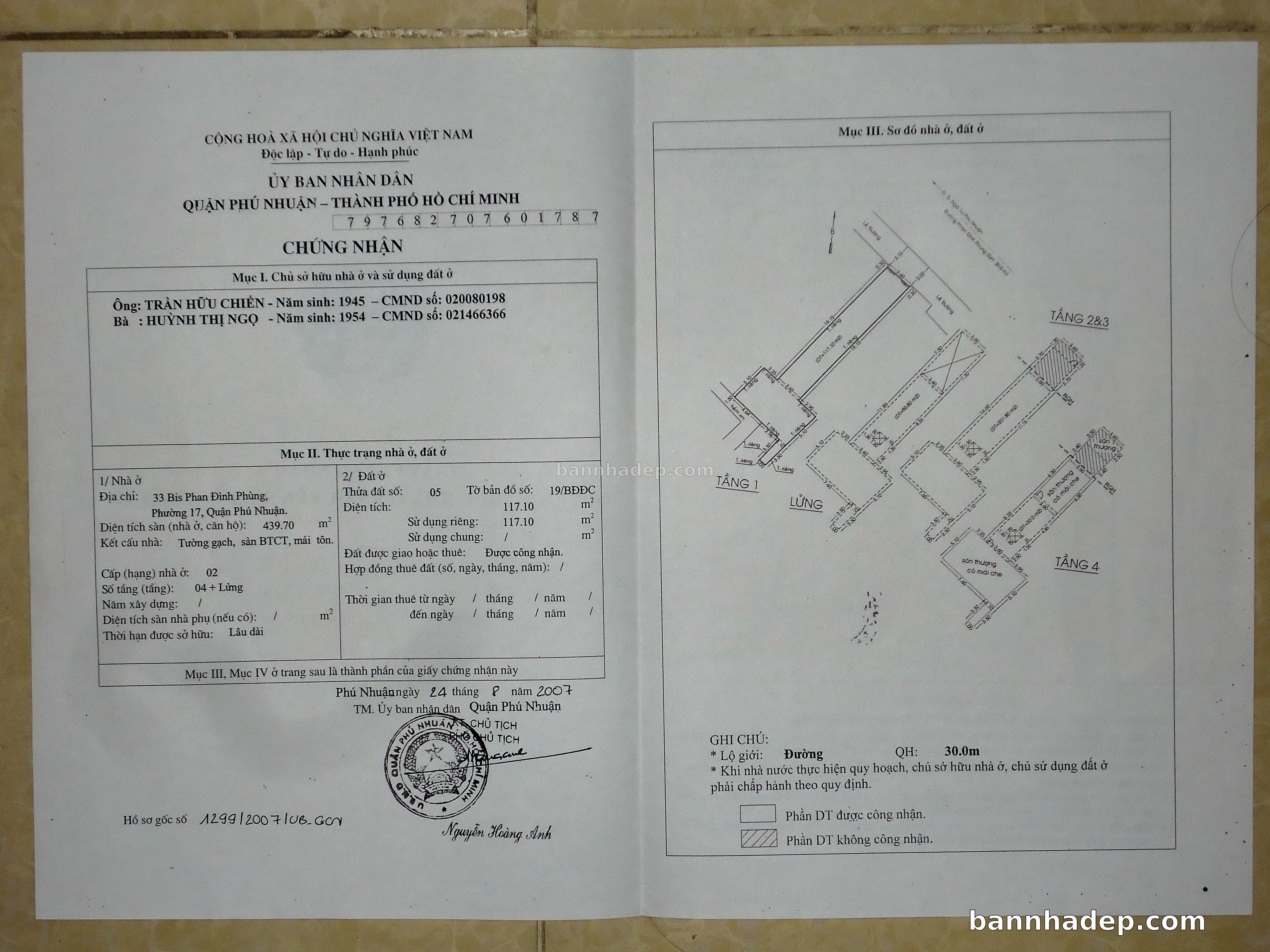 Bán nhà 150 tờ bản đồ số 1 phường 01 quận Phú Nhuận