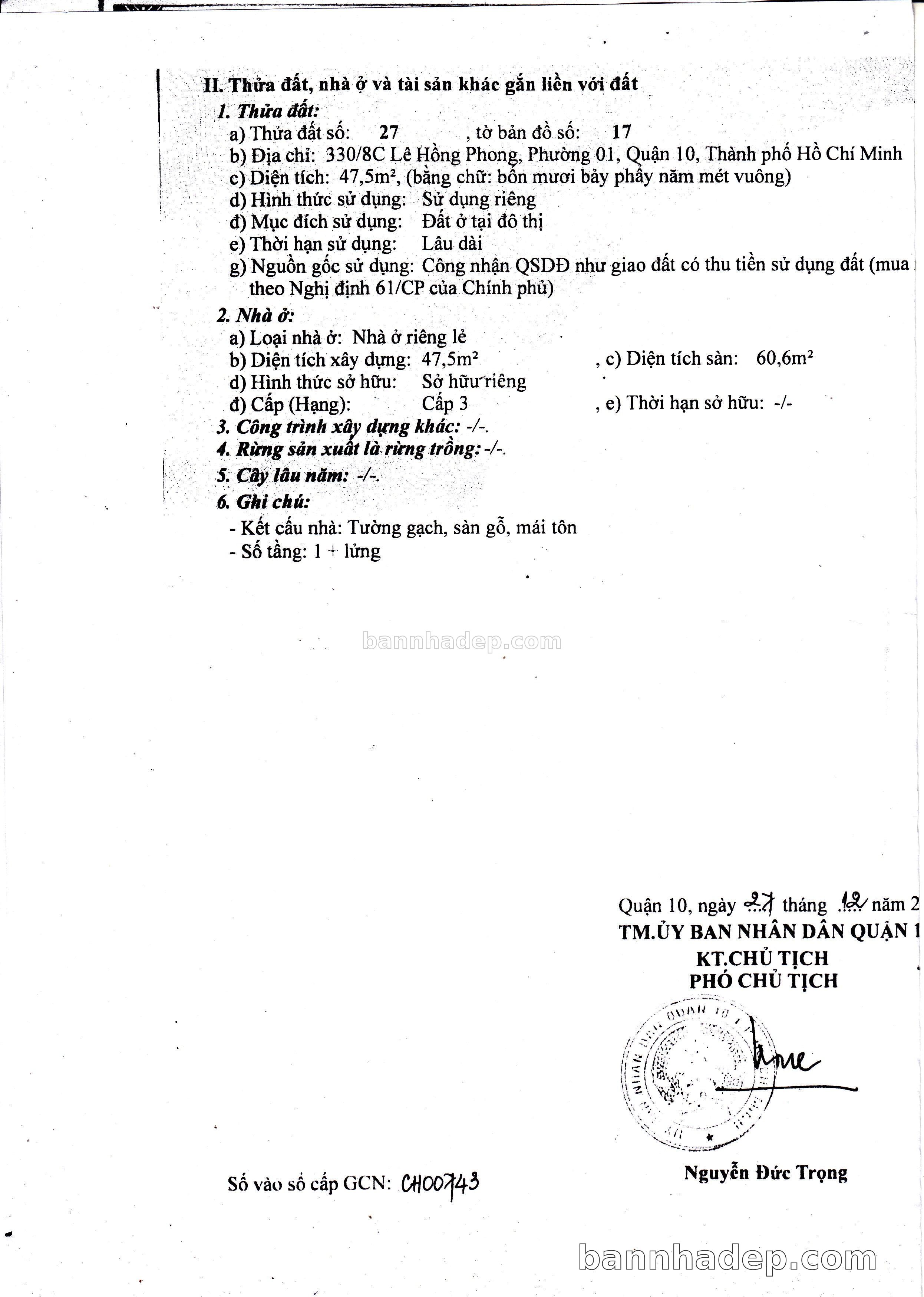 BÁN NHÀ Đường hẻm Số 330/8C Lê Hồng Phong phường 01 quận 10 TP. Hồ Chí Minh – GẦN CÔNG VIÊN GIẢI TRÍ – GIÁ TỐT Cần bán gấp nhà Đường hẻm tại Số 330/8C Lê Hồng Phong phường 01 quận 10 TP. Hồ Chí Minh – tiềm năng kinh doanh cao. Thông tin chi tiết: • Địa chỉ: Số 330/8C Lê Hồng Phong phường 01 quận 10 TP. Hồ Chí Minh • Diện tích: như trong sổ, không gian lý tưởng • Vị trí: Đường hẻm đường Lê Hồng Phong, gần trung tâm thương mại lớn, khu vực sầm uất, tiềm năng kinh doanh cao • Pháp lý: Sổ hồng riêng, không tranh chấp, sẵn sàng giao dịch • Giá bán: Thoả Thuận (còn thương lượng với khách thiện chí) Lợi thế đặc biệt: • Vị trí trung tâm Quận 10 • Giao thông thuận tiện, kết nối các quận trung tâm • Phù hợp kinh doanh dài hạn, ổn định • Khu vực sầm uất, tiềm năng kinh doanh tốt