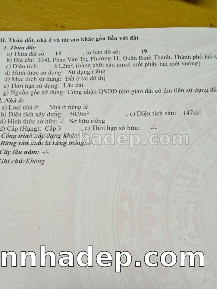 BÁN NHÀ Mặt tiền Số 334L Phan Văn Trị phường 01 quận Bình Thạnh TP. Hồ Chí Minh – GẦN CÔNG VIÊN GIẢI TRÍ – GIÁ TỐT Cần bán gấp nhà Mặt tiền tại Số 334L Phan Văn Trị phường 01 quận Bình Thạnh TP. Hồ Chí Minh – tiềm năng kinh doanh cao. Thông tin chi tiết: • Địa chỉ: Số 334L Phan Văn Trị phường 01 quận Bình Thạnh TP. Hồ Chí Minh • Diện tích: như trong sổ, không gian lý tưởng • Vị trí: Mặt tiền đường Phan Văn Trị, gần trung tâm thương mại lớn, khu vực sầm uất, tiềm năng kinh doanh cao • Pháp lý: Sổ hồng riêng, không tranh chấp, sẵn sàng giao dịch • Giá bán: Thoả Thuận (còn thương lượng với khách thiện chí) Lợi thế đặc biệt: • Vị trí trung tâm Quận Bình Thạnh • Giao thông thuận tiện, kết nối các quận trung tâm • Phù hợp kinh doanh dài hạn, ổn định • Khu vực sầm uất, tiềm năng kinh doanh tốt