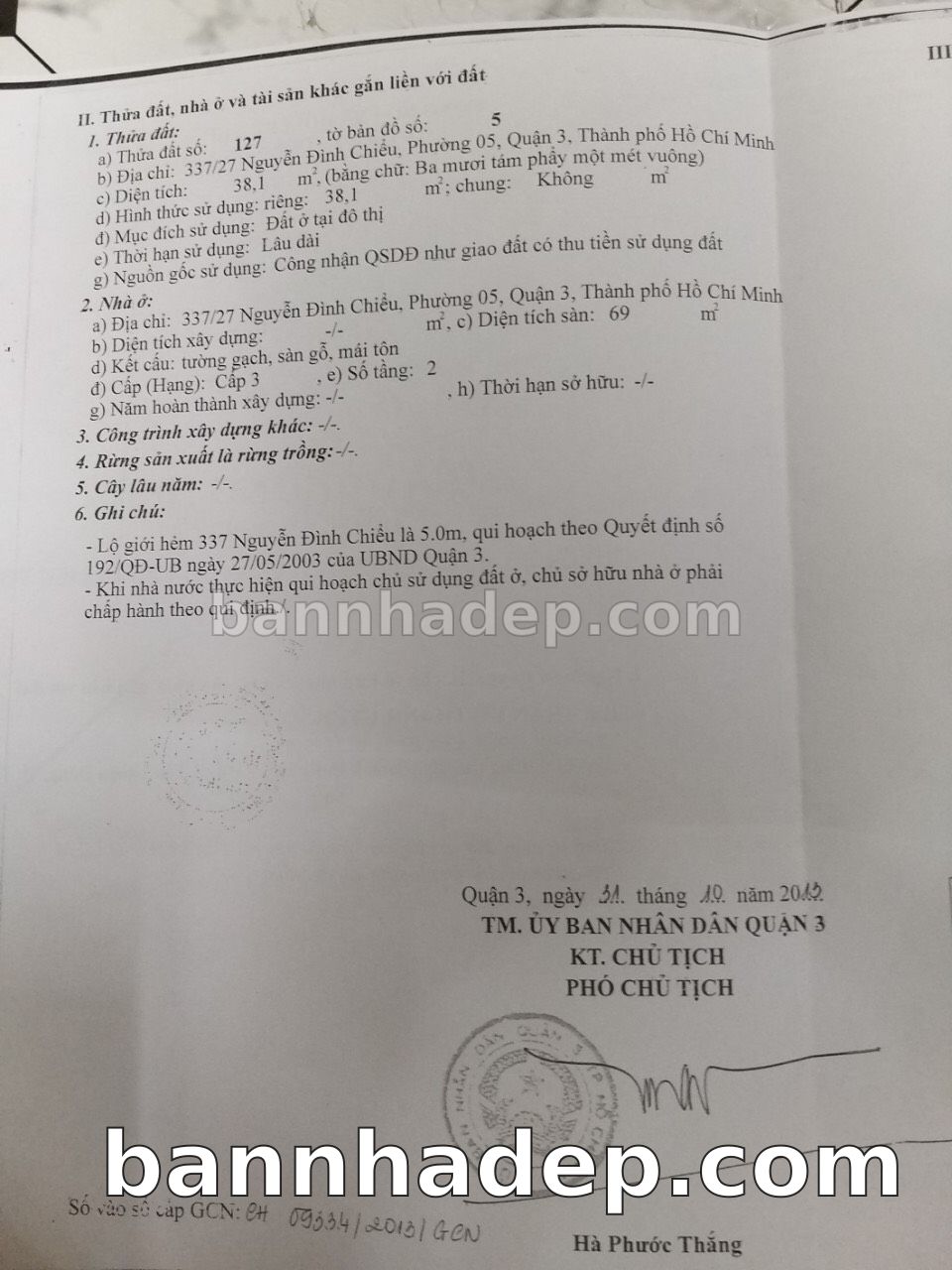 BÁN NHÀ Đường hẻm Số 337/27 Nguyễn Đình Chiểu phường 05 quận 3 TP. Hồ Chí Minh – GẦN CÔNG VIÊN GIẢI TRÍ – GIÁ TỐT Cần bán gấp nhà Đường hẻm tại Số 337/27 Nguyễn Đình Chiểu phường 05 quận 3 TP. Hồ Chí Minh – tiềm năng kinh doanh cao. Thông tin chi tiết: • Địa chỉ: Số 337/27 Nguyễn Đình Chiểu phường 05 quận 3 TP. Hồ Chí Minh • Diện tích: như trong sổ, không gian lý tưởng • Vị trí: Đường hẻm đường Nguyễn Đình Chiểu, gần trung tâm thương mại lớn, khu vực sầm uất, tiềm năng kinh doanh cao • Pháp lý: Sổ hồng riêng, không tranh chấp, sẵn sàng giao dịch • Giá bán: Thoả Thuận (còn thương lượng với khách thiện chí) Lợi thế đặc biệt: • Vị trí trung tâm Quận 3 • Giao thông thuận tiện, kết nối các quận trung tâm • Phù hợp kinh doanh dài hạn, ổn định • Khu vực sầm uất, tiềm năng kinh doanh tốt