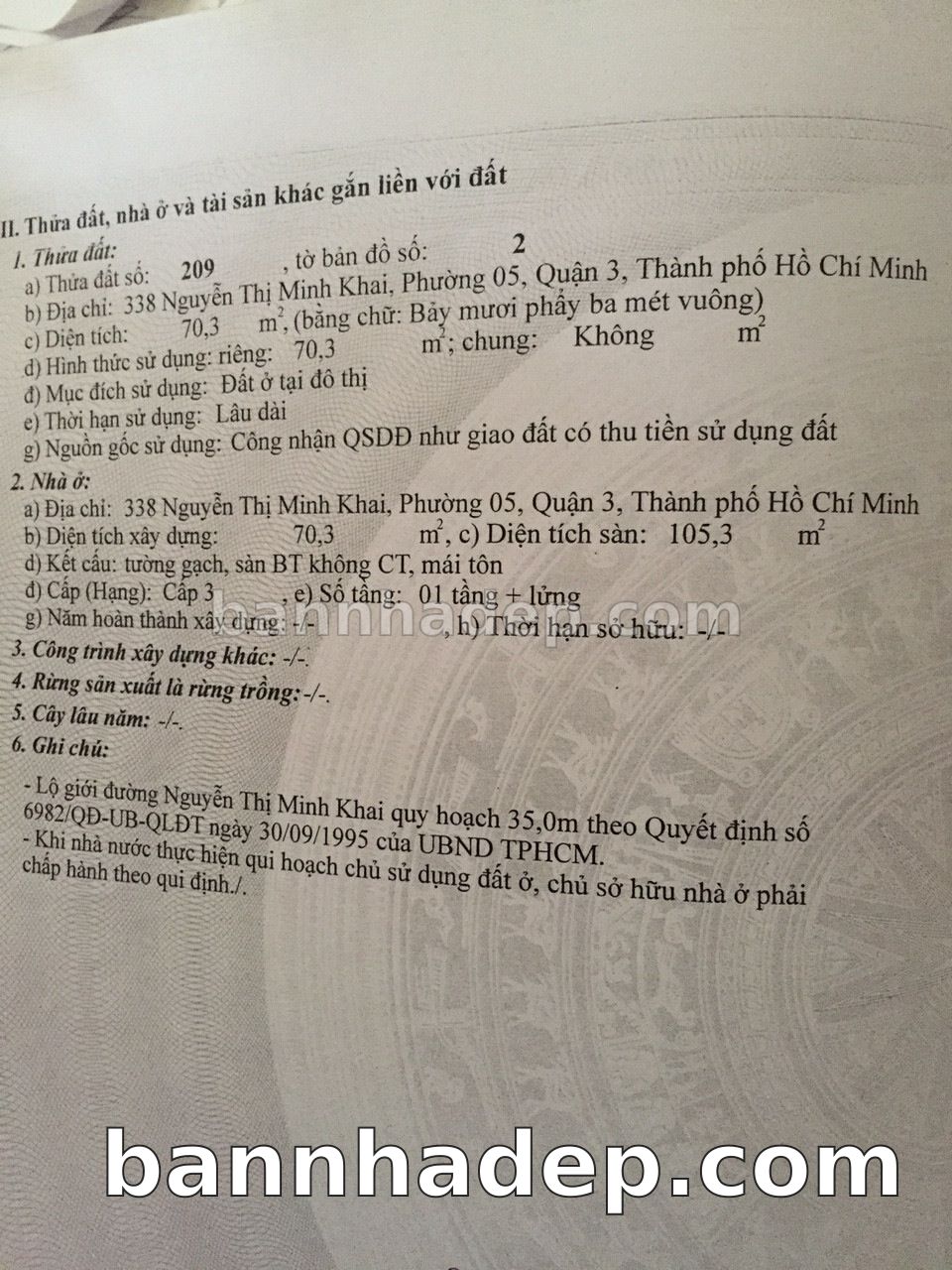 BÁN NHÀ Mặt tiền Số 338 Nguyễn Thị Minh Khai phường 05 quận 3 TP. Hồ Chí Minh – GẦN CÔNG VIÊN GIẢI TRÍ – GIÁ TỐT Cần bán gấp nhà Mặt tiền tại Số 338 Nguyễn Thị Minh Khai phường 05 quận 3 TP. Hồ Chí Minh – tiềm năng kinh doanh cao. Thông tin chi tiết: • Địa chỉ: Số 338 Nguyễn Thị Minh Khai phường 05 quận 3 TP. Hồ Chí Minh • Diện tích: như trong sổ, không gian lý tưởng • Vị trí: Mặt tiền đường Nguyễn Thị Minh Khai, gần trung tâm thương mại lớn, khu vực sầm uất, tiềm năng kinh doanh cao • Pháp lý: Sổ hồng riêng, không tranh chấp, sẵn sàng giao dịch • Giá bán: Thoả Thuận (còn thương lượng với khách thiện chí) Lợi thế đặc biệt: • Vị trí trung tâm Quận 3 • Giao thông thuận tiện, kết nối các quận trung tâm • Phù hợp kinh doanh dài hạn, ổn định • Khu vực sầm uất, tiềm năng kinh doanh tốt