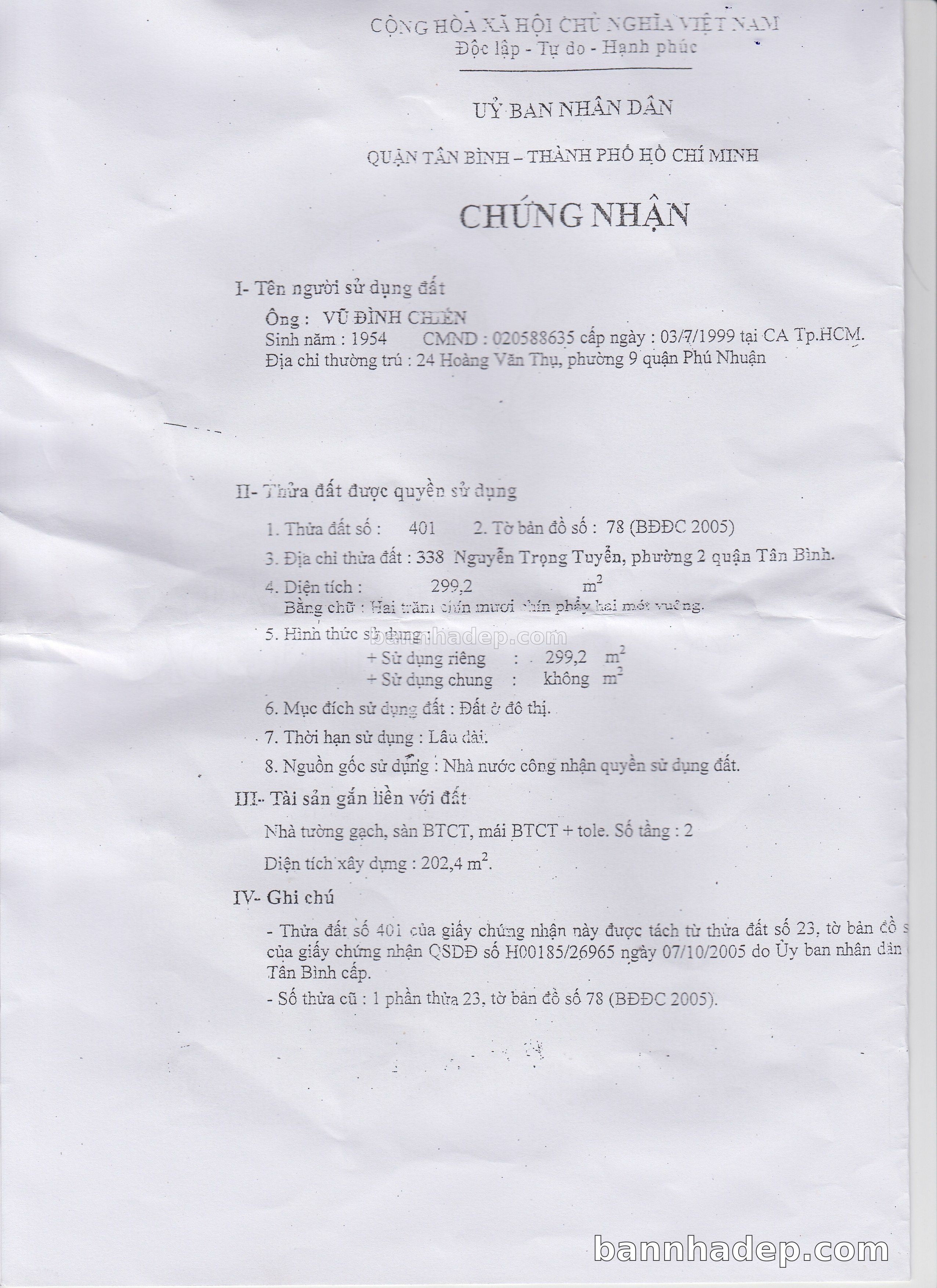 BÁN NHÀ Mặt tiền Số 338 Nguyễn Trọng Tuyển phường 02 quận Tân Bình TP. Hồ Chí Minh – GẦN CÔNG VIÊN GIẢI TRÍ – GIÁ TỐT Cần bán gấp nhà Mặt tiền tại Số 338 Nguyễn Trọng Tuyển phường 02 quận Tân Bình TP. Hồ Chí Minh – tiềm năng kinh doanh cao. Thông tin chi tiết: • Địa chỉ: Số 338 Nguyễn Trọng Tuyển phường 02 quận Tân Bình TP. Hồ Chí Minh • Diện tích: như trong sổ, không gian lý tưởng • Vị trí: Mặt tiền đường Nguyễn Trọng Tuyển, gần trung tâm thương mại lớn, khu vực sầm uất, tiềm năng kinh doanh cao • Pháp lý: Sổ hồng riêng, không tranh chấp, sẵn sàng giao dịch • Giá bán: Thoả Thuận (còn thương lượng với khách thiện chí) Lợi thế đặc biệt: • Vị trí trung tâm Quận Tân Bình • Giao thông thuận tiện, kết nối các quận trung tâm • Phù hợp kinh doanh dài hạn, ổn định • Khu vực sầm uất, tiềm năng kinh doanh tốt