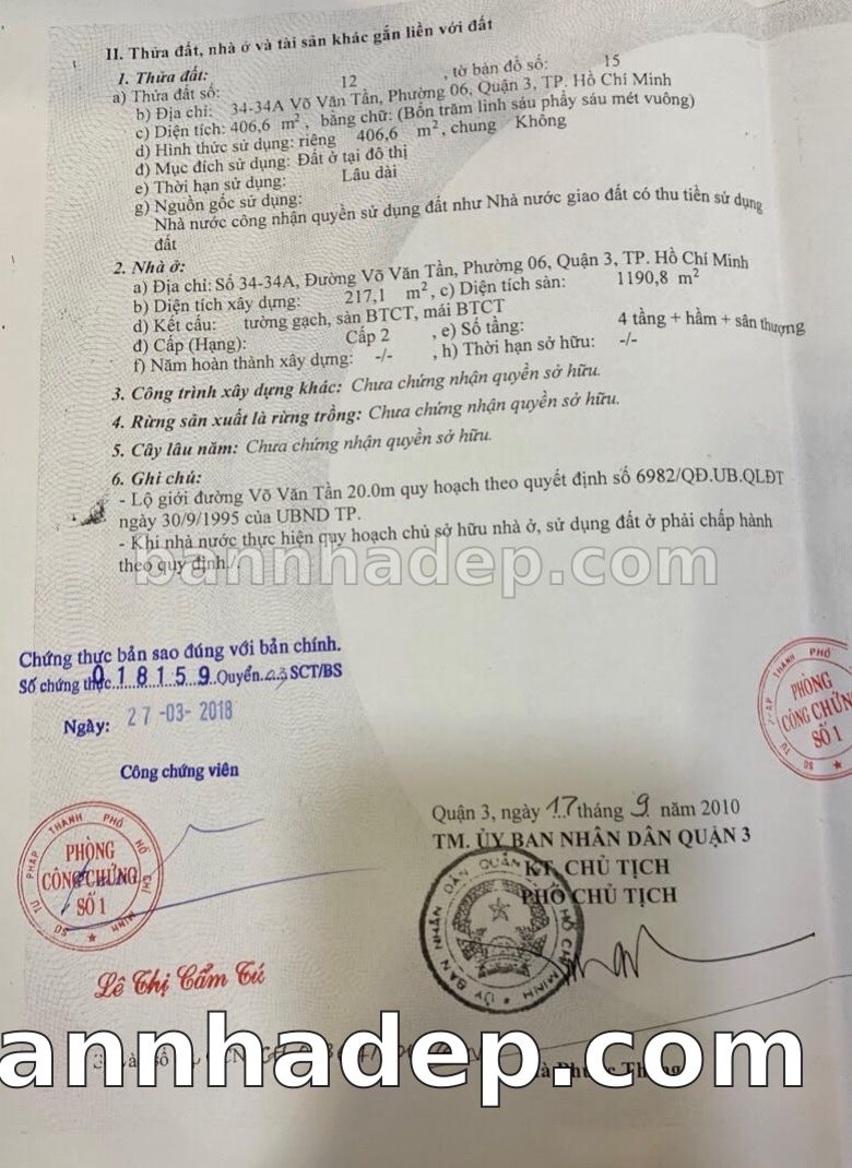 BÁN NHÀ MẶT TIỀN Số 34-34A Võ Văn Tần Phường Võ Thị Sáu Quận 3 TP. Hồ Chí Minh – GẦN TRUNG TÂM THƯƠNG MẠI – GIÁ CỰC TỐT 350 TỶ Cần bán gấp nhà mặt tiền tại Số 34-34A Võ Văn Tần Phường Võ Thị Sáu Quận 3 TP. Hồ Chí Minh – tiềm năng kinh doanh cao. Thông tin chi tiết: • Địa chỉ: Số 34-34A Võ Văn Tần Phường Võ Thị Sáu Quận 3 TP. Hồ Chí Minh • Diện tích: 13.7m x 29.1m, không gian rộng rãi • Vị trí: Mặt tiền đường Võ Văn Tần, gần chợ, khu vực sầm uất, tiềm năng cao • Pháp lý: Sổ hồng riêng, sẵn sàng sang tên • Giá bán: 350 Tỷ (giá tốt, có thể thương lượng) Ưu điểm nổi bật: • Phù hợp kinh doanh dài hạn, ổn định • Khu vực phát triển, tiềm năng tăng trưởng cao • Khu vực sầm uất, tiềm năng kinh doanh tốt • Giao thông thuận tiện, kết nối các quận trung tâm
