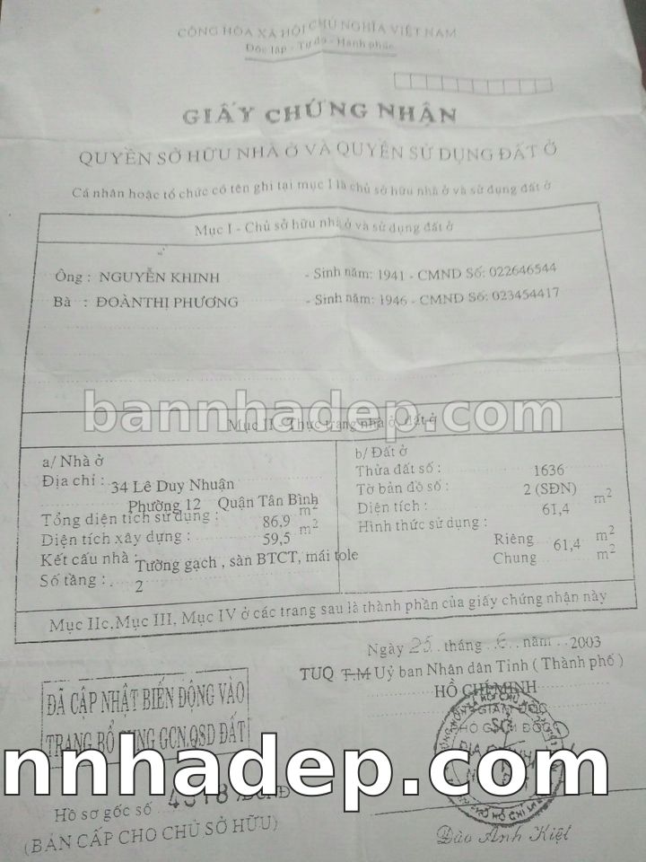 Bán nhà 34 Lê Duy Nhuận phường 01 quận Tân Bình