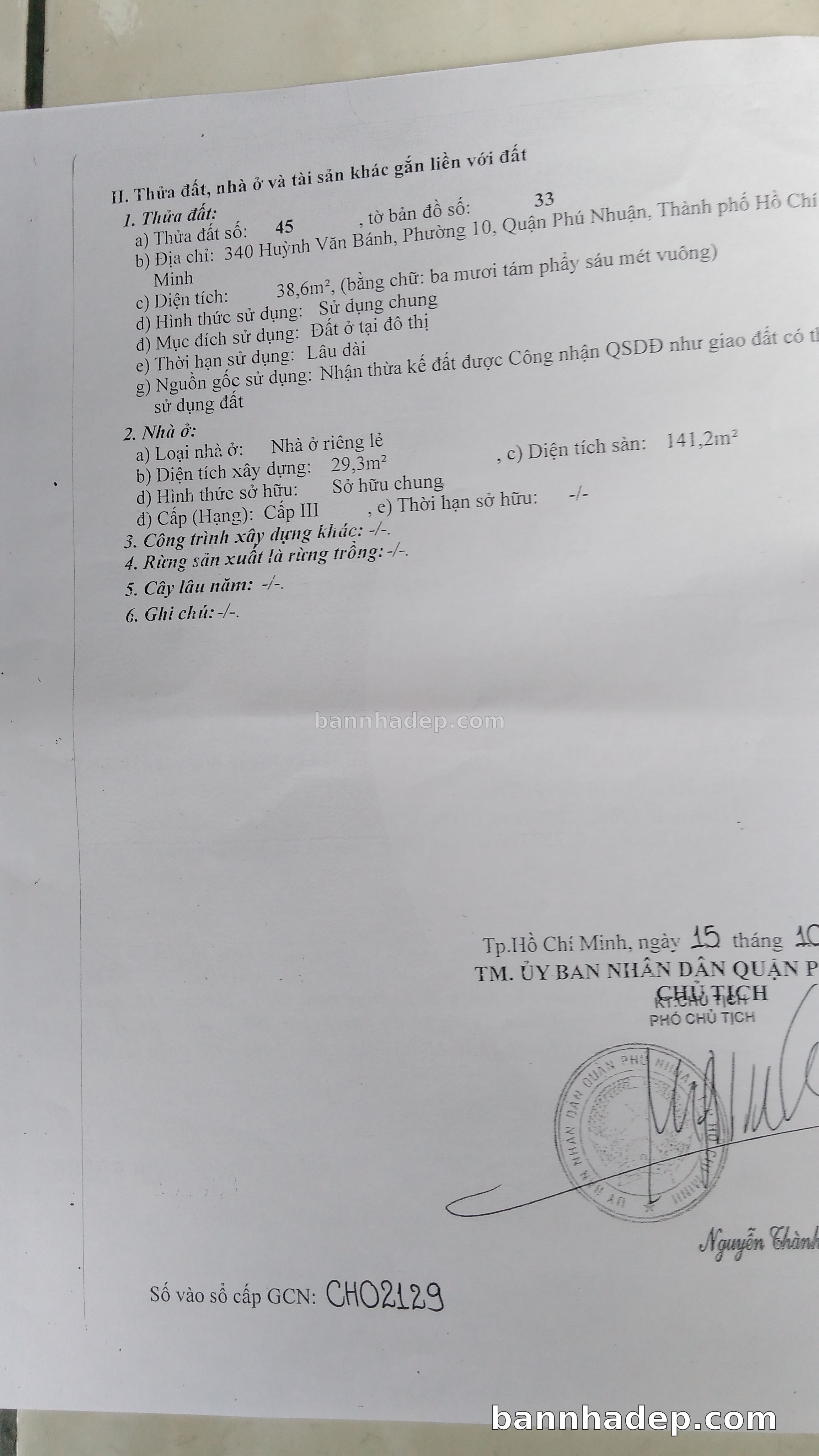 Bán nhà 150 tờ bản đồ số 1 phường 01 quận Phú Nhuận