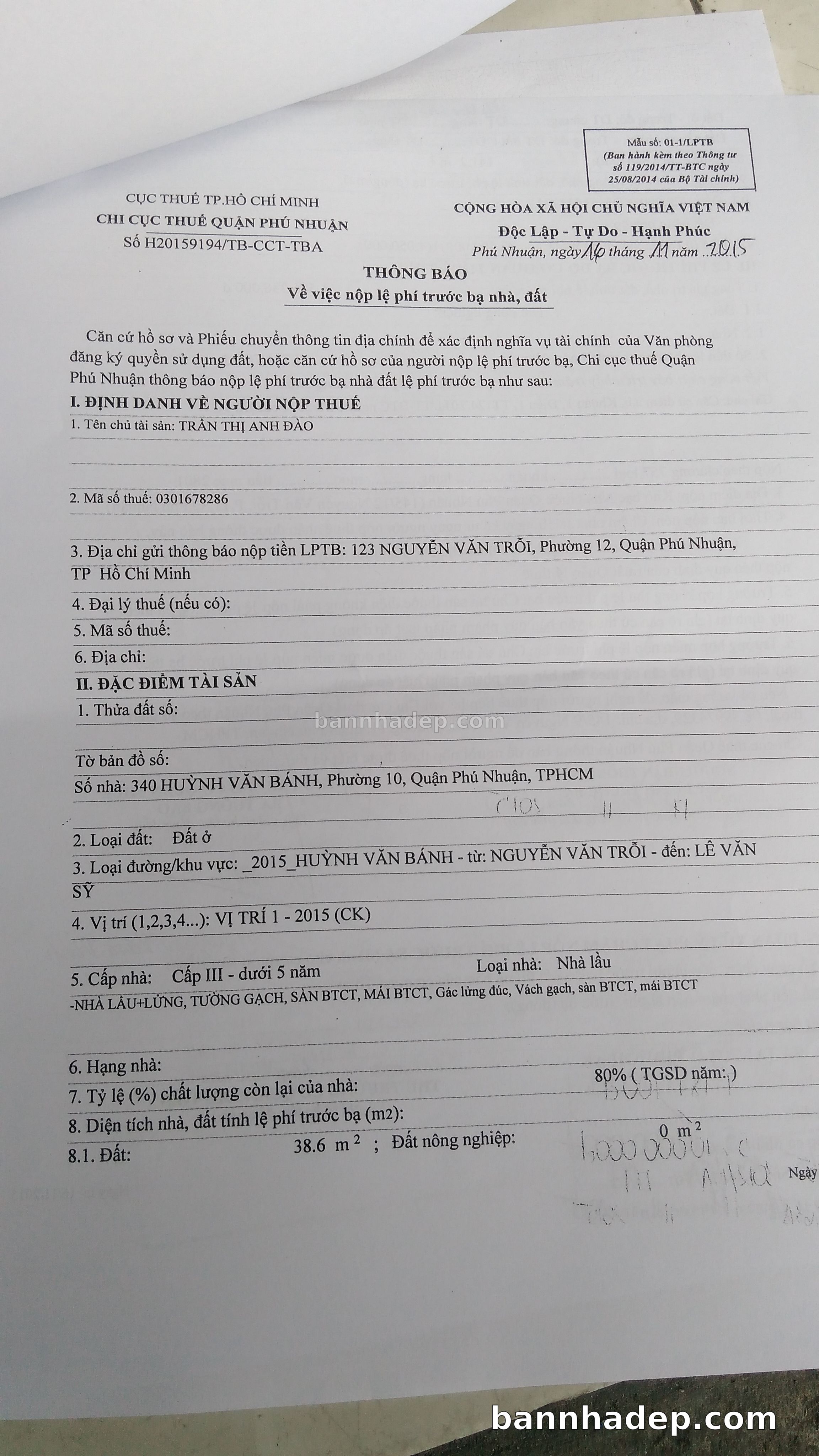 Bán nhà 340 Huỳnh Văn Bánh phường 01 quận Phú Nhuận