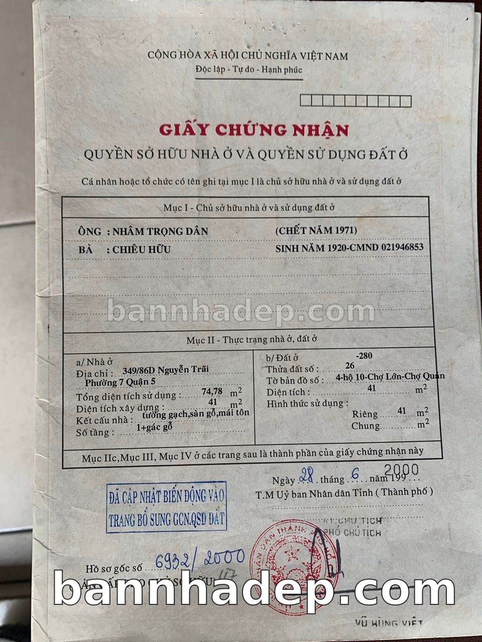 BÁN NHÀ Đường hẻm Số 349/86D Nguyễn Trãi phường 07 quận 5 TP. Hồ Chí Minh – GẦN CÔNG VIÊN GIẢI TRÍ – GIÁ TỐT Cần bán gấp nhà Đường hẻm tại Số 349/86D Nguyễn Trãi phường 07 quận 5 TP. Hồ Chí Minh – tiềm năng kinh doanh cao. Thông tin chi tiết: • Địa chỉ: Số 349/86D Nguyễn Trãi phường 07 quận 5 TP. Hồ Chí Minh • Diện tích: như trong sổ, không gian lý tưởng • Vị trí: Đường hẻm đường Nguyễn Trãi, gần trung tâm thương mại lớn, khu vực sầm uất, tiềm năng kinh doanh cao • Pháp lý: Sổ hồng riêng, không tranh chấp, sẵn sàng giao dịch • Giá bán: Thoả Thuận (còn thương lượng với khách thiện chí) Lợi thế đặc biệt: • Vị trí trung tâm Quận 5 • Giao thông thuận tiện, kết nối các quận trung tâm • Phù hợp kinh doanh dài hạn, ổn định • Khu vực sầm uất, tiềm năng kinh doanh tốt