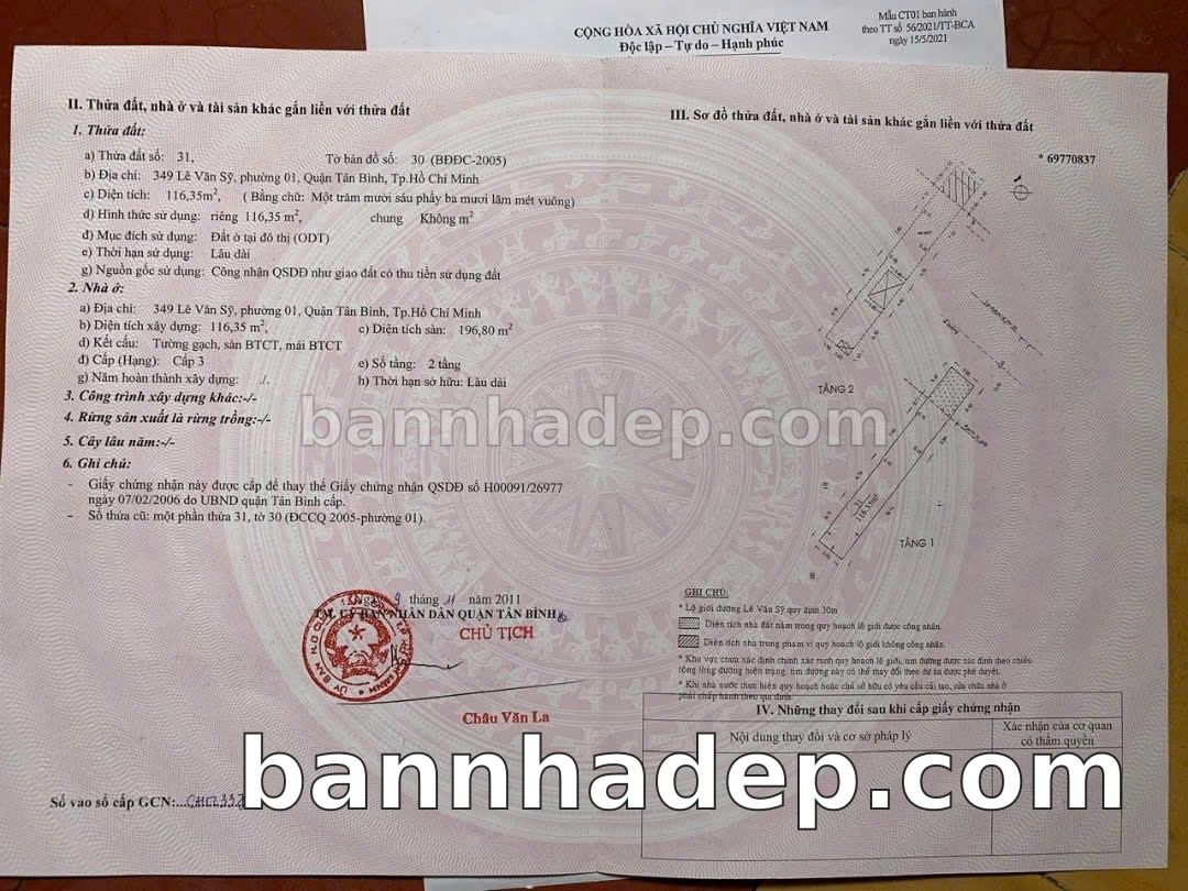BÁN NHÀ MẶT TIỀN Số 349 Lê Văn Sỹ Phường 1 Quận Tân Bình TP. Hồ Chí Minh – GẦN TRƯỜNG HỌC QUỐC TẾ – GIÁ TỐT 43 TỶ Cần bán nhà mặt tiền tại Số 349 Lê Văn Sỹ Phường 1 Quận Tân Bình TP. Hồ Chí Minh. Thông tin chi tiết: • Địa chỉ: Số 349 Lê Văn Sỹ Phường 1 Quận Tân Bình TP. Hồ Chí Minh • Diện tích: 4.0m x 32.0m, mặt tiền rộng • Vị trí: Mặt tiền đường Lê Văn Sỹ sầm uất, gần công viên giải trí, khu vực dân cư đông đúc, lưu lượng xe cộ lớn – cực kỳ thích hợp kinh doanh mọi ngành nghề: cửa hàng thời trang, nhà hàng, quán ăn, tiệm giặt là, văn phòng • Pháp lý: Sổ hồng riêng, sẵn sàng sang tên • Giá bán: 43 Tỷ (có thể thương lượng) Lợi thế đặc biệt: • Phù hợp kinh doanh dài hạn, ổn định • Giao thông thuận tiện, kết nối các quận trung tâm • Khu vực sầm uất, tiềm năng kinh doanh tốt • Khu vực sầm uất, lưu lượng khách hàng lớn