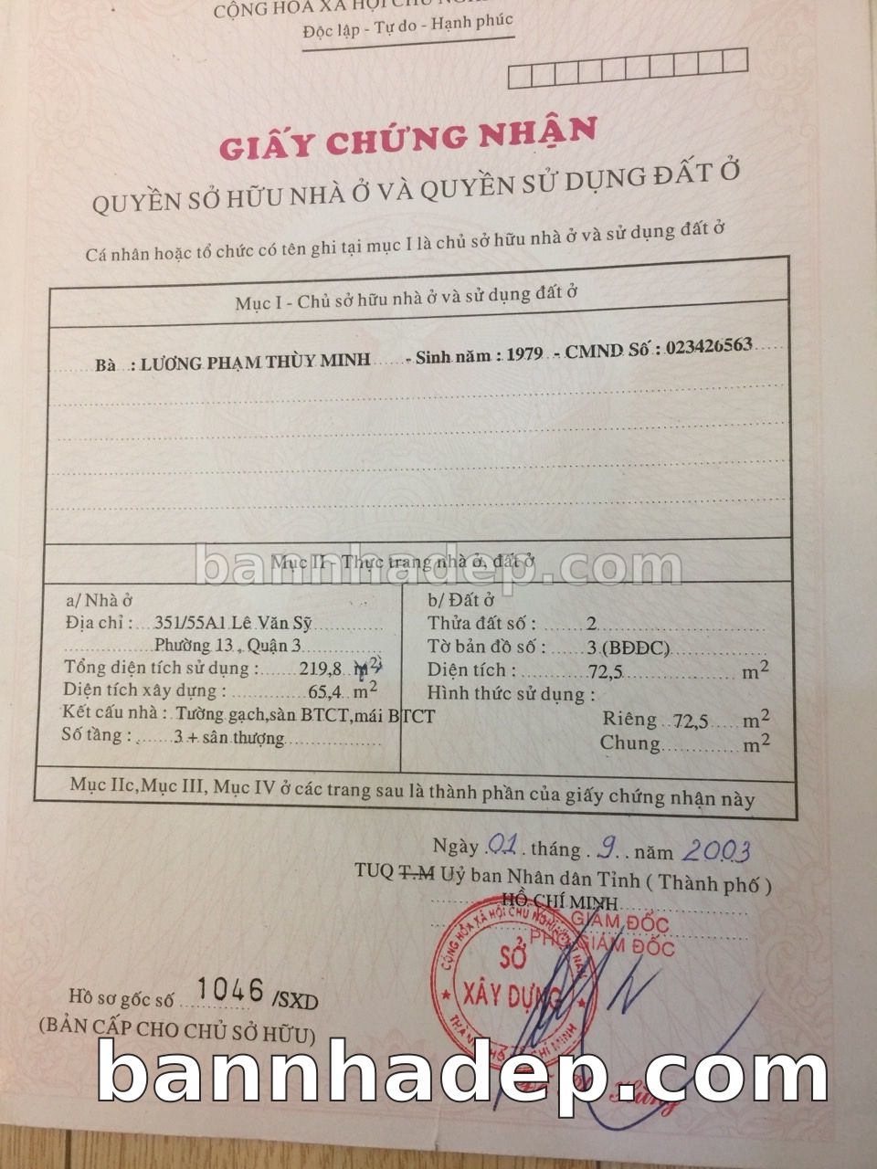 BÁN NHÀ Đường hẻm Số 351/55A1 Lê Văn Sỹ phường 01 quận 3 TP. Hồ Chí Minh – GẦN CÔNG VIÊN GIẢI TRÍ – GIÁ TỐT Cần bán gấp nhà Đường hẻm tại Số 351/55A1 Lê Văn Sỹ phường 01 quận 3 TP. Hồ Chí Minh – tiềm năng kinh doanh cao. Thông tin chi tiết: • Địa chỉ: Số 351/55A1 Lê Văn Sỹ phường 01 quận 3 TP. Hồ Chí Minh • Diện tích: như trong sổ, không gian lý tưởng • Vị trí: Đường hẻm đường Lê Văn Sỹ, gần trung tâm thương mại lớn, khu vực sầm uất, tiềm năng kinh doanh cao • Pháp lý: Sổ hồng riêng, không tranh chấp, sẵn sàng giao dịch • Giá bán: Thoả Thuận (còn thương lượng với khách thiện chí) Lợi thế đặc biệt: • Vị trí trung tâm Quận 3 • Giao thông thuận tiện, kết nối các quận trung tâm • Phù hợp kinh doanh dài hạn, ổn định • Khu vực sầm uất, tiềm năng kinh doanh tốt
