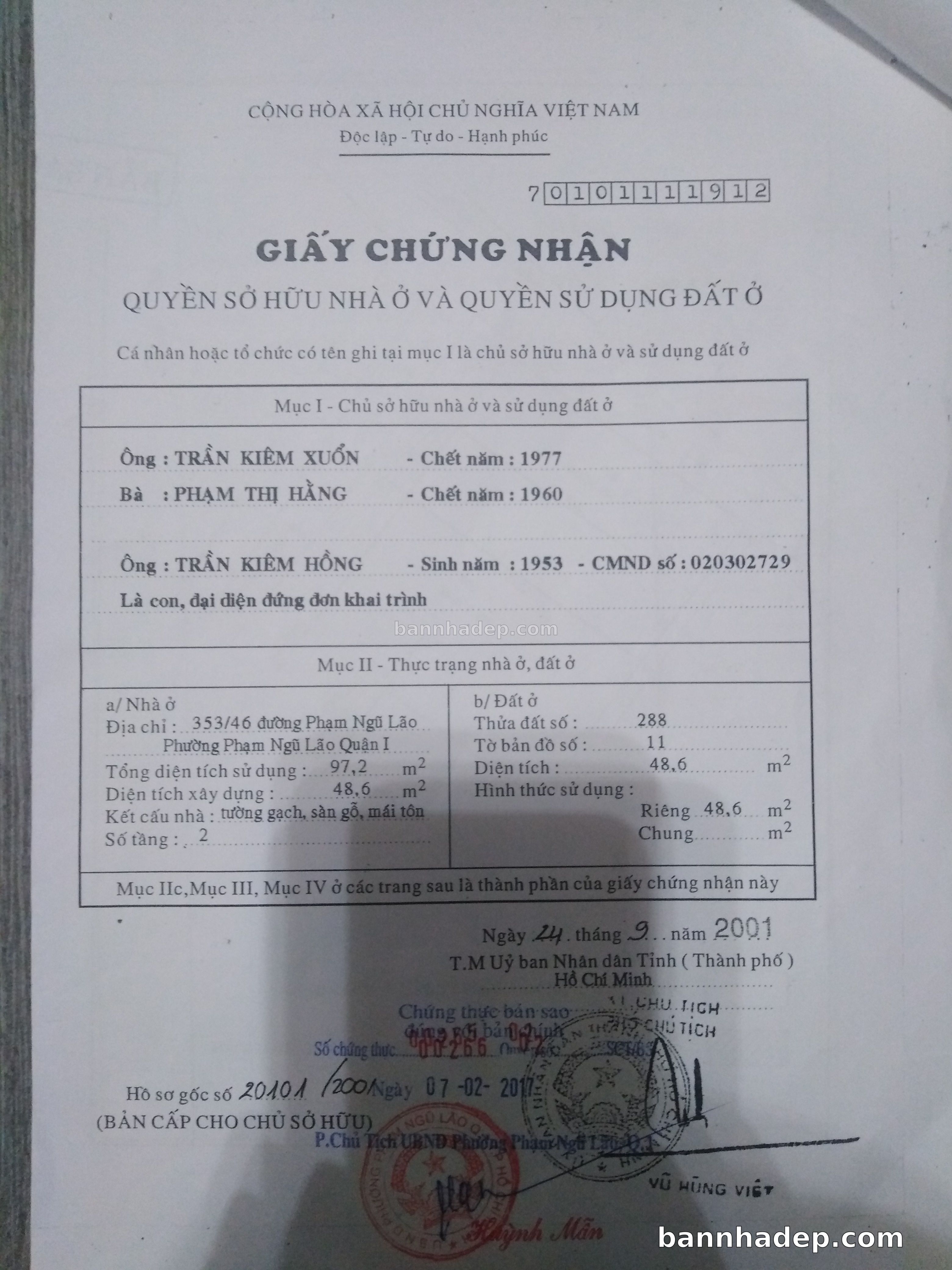 Bán nhà 353/46 Phạm Ngũ Lão phường Phạm Ngũ Lão quận 1