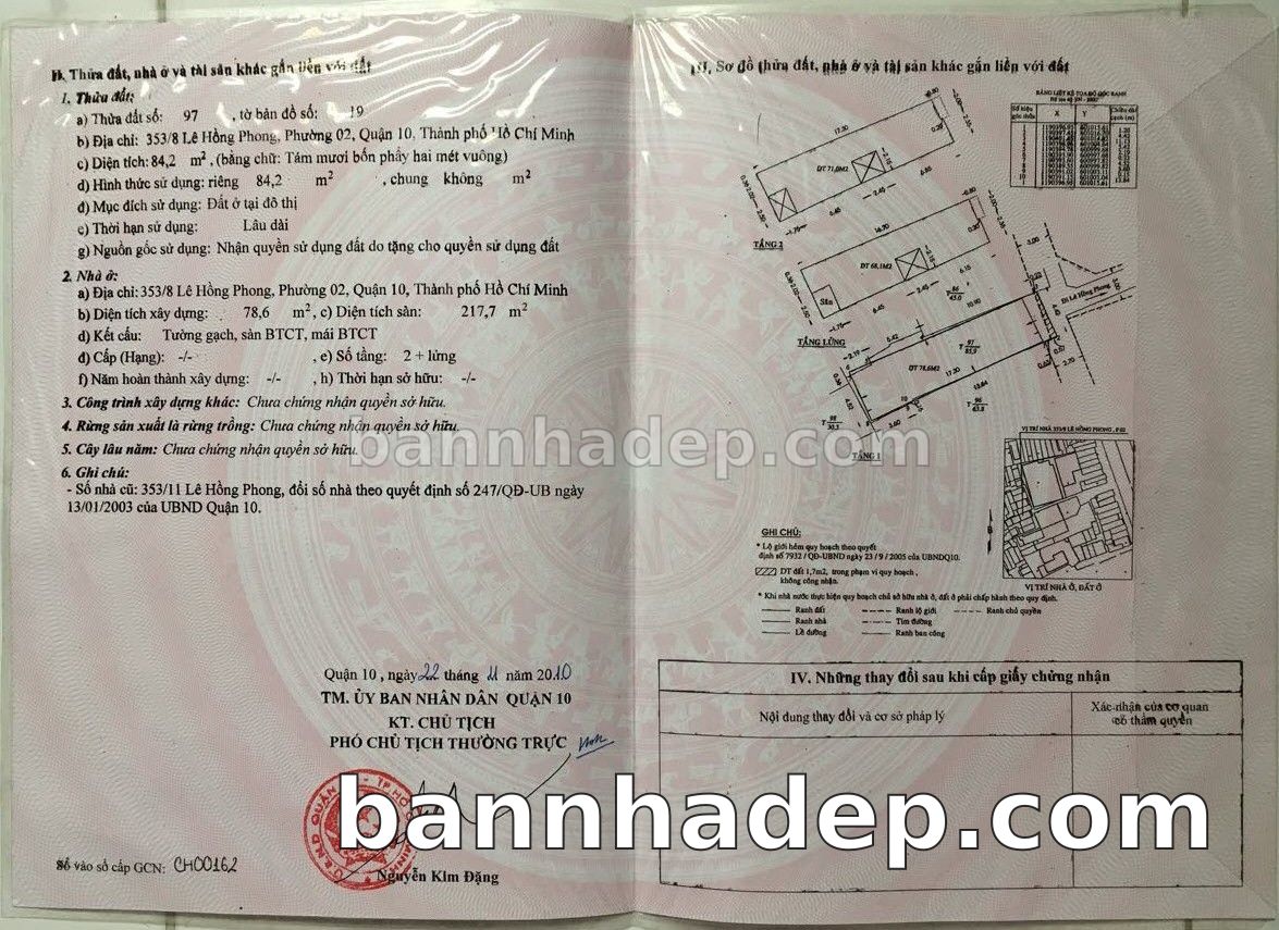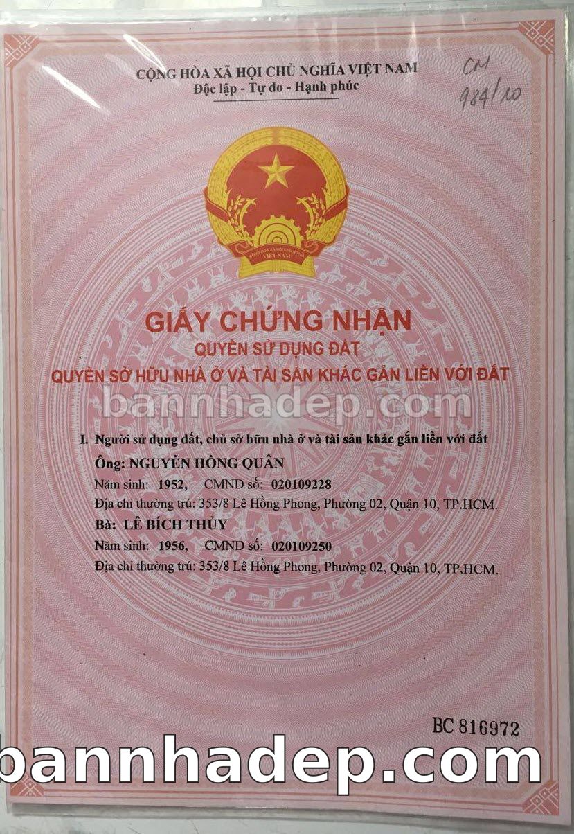 BÁN NHÀ Đường hẻm Số 353/8 Lê Hồng Phong phường 02 quận 10 TP. Hồ Chí Minh – GẦN CÔNG VIÊN GIẢI TRÍ – GIÁ TỐT Cần bán gấp nhà Đường hẻm tại Số 353/8 Lê Hồng Phong phường 02 quận 10 TP. Hồ Chí Minh – tiềm năng kinh doanh cao. Thông tin chi tiết: • Địa chỉ: Số 353/8 Lê Hồng Phong phường 02 quận 10 TP. Hồ Chí Minh • Diện tích: như trong sổ, không gian lý tưởng • Vị trí: Đường hẻm đường Lê Hồng Phong, gần trung tâm thương mại lớn, khu vực sầm uất, tiềm năng kinh doanh cao • Pháp lý: Sổ hồng riêng, không tranh chấp, sẵn sàng giao dịch • Giá bán: Thoả Thuận (còn thương lượng với khách thiện chí) Lợi thế đặc biệt: • Vị trí trung tâm Quận 10 • Giao thông thuận tiện, kết nối các quận trung tâm • Phù hợp kinh doanh dài hạn, ổn định • Khu vực sầm uất, tiềm năng kinh doanh tốt