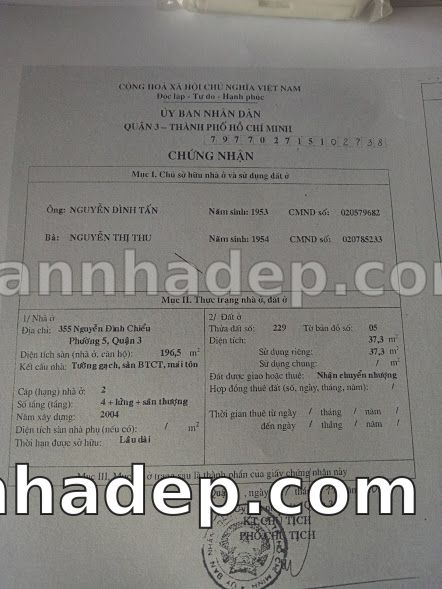 Bán nhà 355 Nguyễn Đình Chiểu phường 05 quận 3