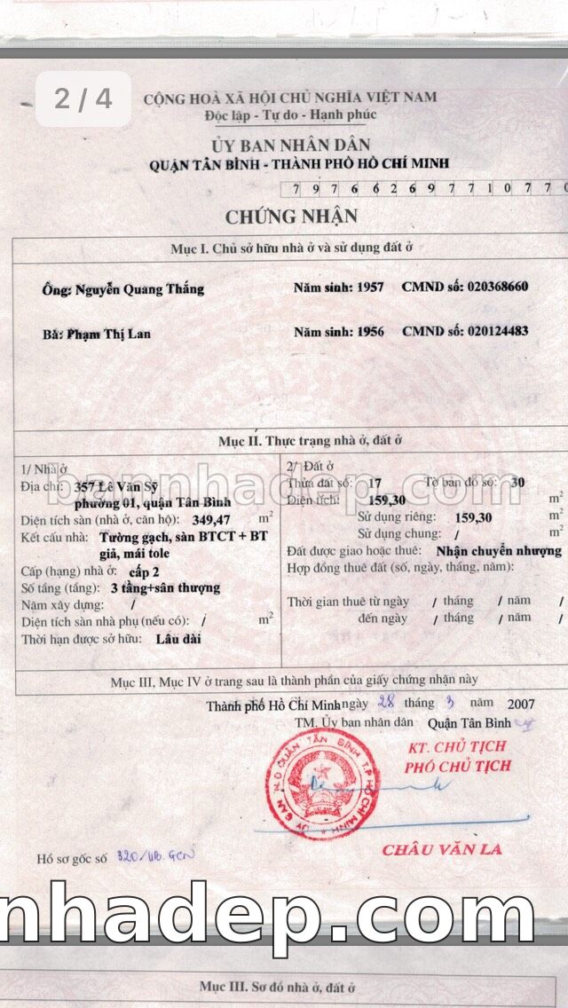 Bán nhà 357 Lê Văn Sỹ phường 01 quận Tân Bình