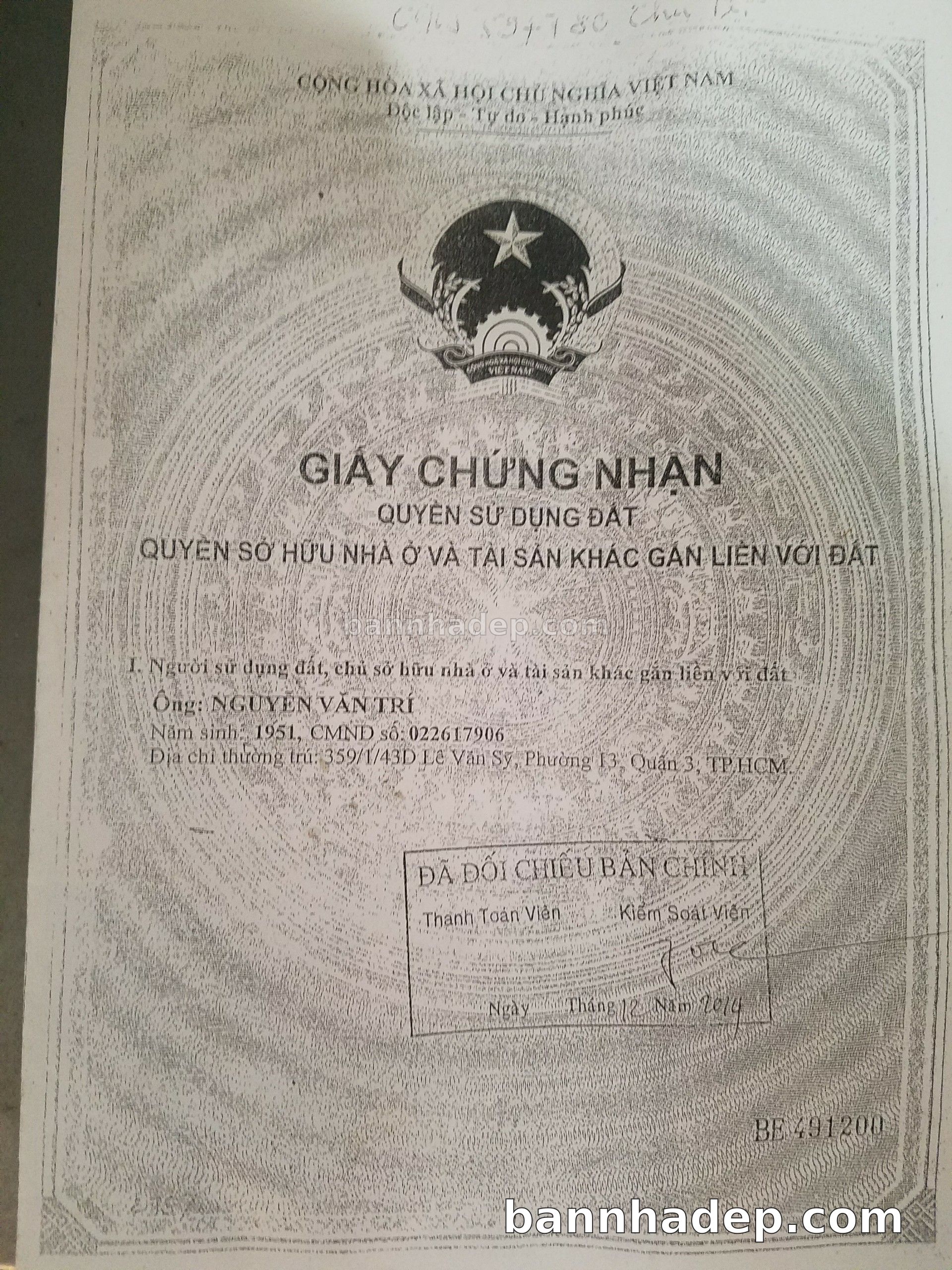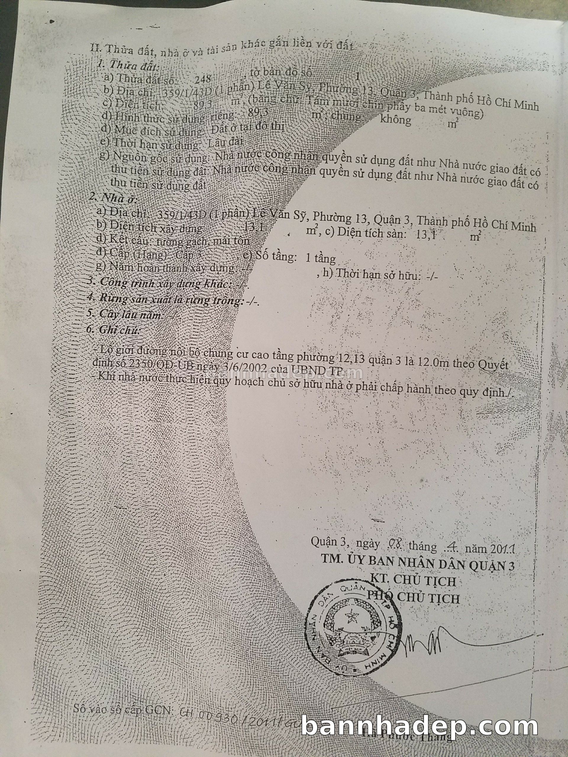 Bán nhà 359/1/43D Lê Văn Sỹ phường 01 quận 3