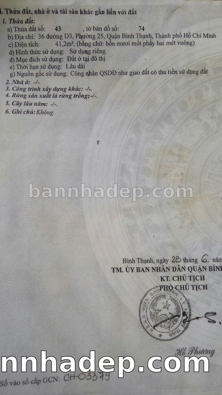 Bán nhà 36 Đường D3 phường 02 quận Bình Thạnh
