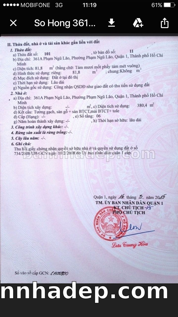 BÁN NHÀ Mặt tiền Số 361A Phạm Ngũ Lão phường Phạm Ngũ Lão quận 1 TP. Hồ Chí Minh – GẦN CÔNG VIÊN GIẢI TRÍ – GIÁ TỐT Cần bán gấp nhà Mặt tiền tại Số 361A Phạm Ngũ Lão phường Phạm Ngũ Lão quận 1 TP. Hồ Chí Minh – tiềm năng kinh doanh cao. Thông tin chi tiết: • Địa chỉ: Số 361A Phạm Ngũ Lão phường Phạm Ngũ Lão quận 1 TP. Hồ Chí Minh • Diện tích: như trong sổ, không gian lý tưởng • Vị trí: Mặt tiền đường Phạm Ngũ Lão, gần trung tâm thương mại lớn, khu vực sầm uất, tiềm năng kinh doanh cao • Pháp lý: Sổ hồng riêng, không tranh chấp, sẵn sàng giao dịch • Giá bán: Thoả Thuận (còn thương lượng với khách thiện chí) Lợi thế đặc biệt: • Vị trí trung tâm Quận 1 • Giao thông thuận tiện, kết nối các quận trung tâm • Phù hợp kinh doanh dài hạn, ổn định • Khu vực sầm uất, tiềm năng kinh doanh tốt