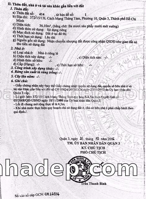 Bán nhà 372/15/13L Cách mạng tháng 8 phường 01 quận 3