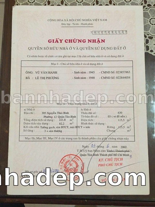 Bán nhà 395 Nguyễn Thái Bình phường 01 quận Tân Bình