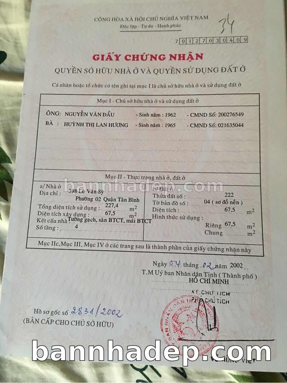 BÁN NHÀ Mặt tiền Số 398 Lê Văn Sỹ phường 02 quận Tân Bình TP. Hồ Chí Minh – GẦN CÔNG VIÊN GIẢI TRÍ – GIÁ TỐT Cần bán gấp nhà Mặt tiền tại Số 398 Lê Văn Sỹ phường 02 quận Tân Bình TP. Hồ Chí Minh – tiềm năng kinh doanh cao. Thông tin chi tiết: • Địa chỉ: Số 398 Lê Văn Sỹ phường 02 quận Tân Bình TP. Hồ Chí Minh • Diện tích: như trong sổ, không gian lý tưởng • Vị trí: Mặt tiền đường Lê Văn Sỹ, gần trung tâm thương mại lớn, khu vực sầm uất, tiềm năng kinh doanh cao • Pháp lý: Sổ hồng riêng, không tranh chấp, sẵn sàng giao dịch • Giá bán: Thoả Thuận (còn thương lượng với khách thiện chí) Lợi thế đặc biệt: • Vị trí trung tâm Quận Tân Bình • Giao thông thuận tiện, kết nối các quận trung tâm • Phù hợp kinh doanh dài hạn, ổn định • Khu vực sầm uất, tiềm năng kinh doanh tốt