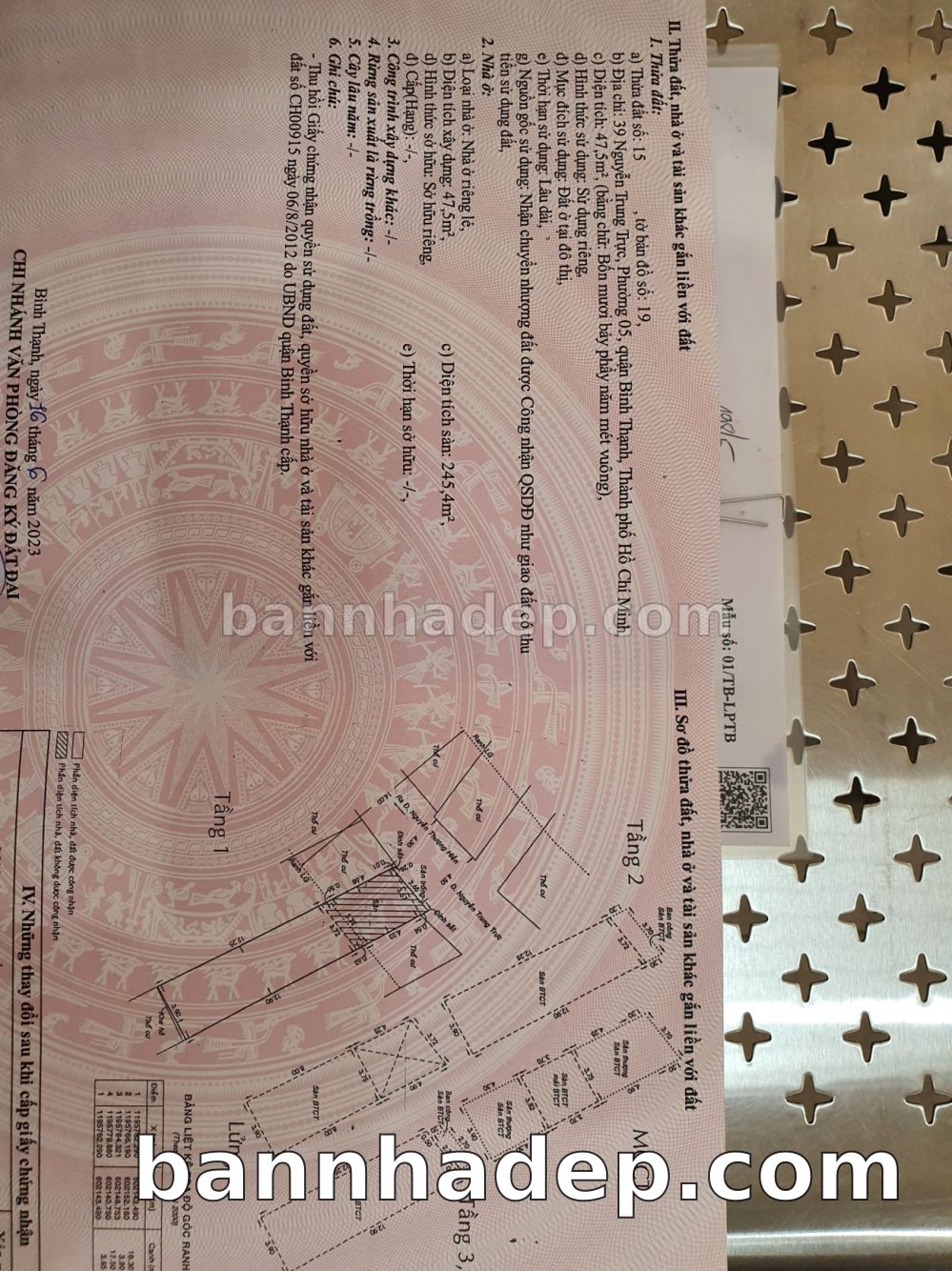 Địa chỉ: 39Thửa: 15Tờ: 19 Nguyễn Trung Trực phường 5 quận Bình Thạnh