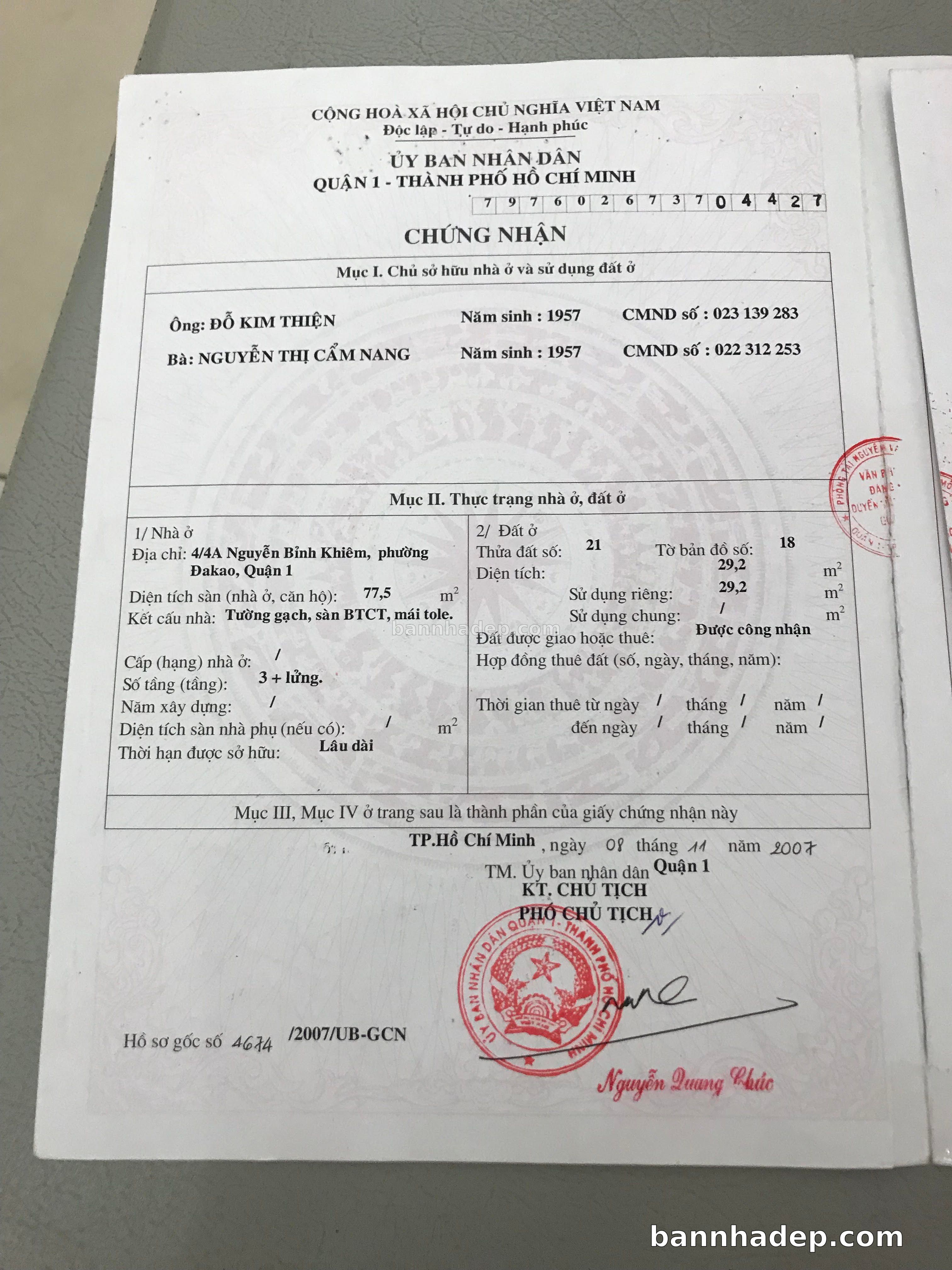 BÁN NHÀ Đường hẻm Số 4/4A Nguyễn Bỉnh Khiêm phường Đa Kao quận 1 TP. Hồ Chí Minh – GẦN CÔNG VIÊN GIẢI TRÍ – GIÁ TỐT Cần bán gấp nhà Đường hẻm tại Số 4/4A Nguyễn Bỉnh Khiêm phường Đa Kao quận 1 TP. Hồ Chí Minh – tiềm năng kinh doanh cao. Thông tin chi tiết: • Địa chỉ: Số 4/4A Nguyễn Bỉnh Khiêm phường Đa Kao quận 1 TP. Hồ Chí Minh • Diện tích: như trong sổ, không gian lý tưởng • Vị trí: Đường hẻm đường Nguyễn Bỉnh Khiêm, gần trung tâm thương mại lớn, khu vực sầm uất, tiềm năng kinh doanh cao • Pháp lý: Sổ hồng riêng, không tranh chấp, sẵn sàng giao dịch • Giá bán: Thoả Thuận (còn thương lượng với khách thiện chí) Lợi thế đặc biệt: • Vị trí trung tâm Quận 1 • Giao thông thuận tiện, kết nối các quận trung tâm • Phù hợp kinh doanh dài hạn, ổn định • Khu vực sầm uất, tiềm năng kinh doanh tốt