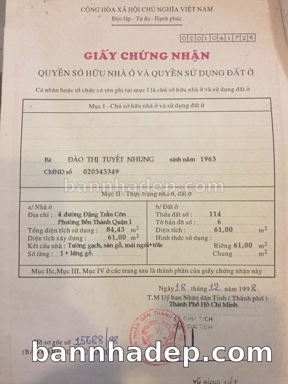 Bán nhà 147 Lê Thị Riêng phường Bến Thành quận 1