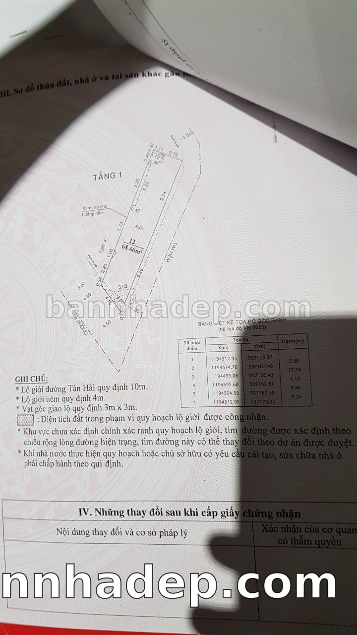 Bán nhà 4 Tân Hải phường 01 quận Tân Bình