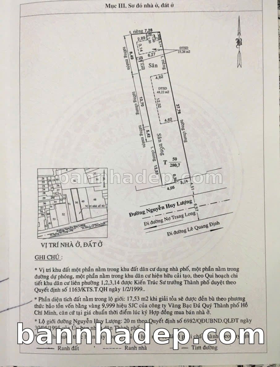 CẦN BÁN GẤP NHÀ MẶT TIỀN Số 40 Nguyễn Huy Lượng Phường 14 Quận Bình Thạnh TP. Hồ Chí Minh – GẦN CÔNG VIÊN GIẢI TRÍ – GIÁ 80 TỶ Cần bán gấp nhà mặt tiền tại Số 40 Nguyễn Huy Lượng Phường 14 Quận Bình Thạnh TP. Hồ Chí Minh – tiềm năng kinh doanh cao. Thông tin chi tiết: • Địa chỉ: Số 40 Nguyễn Huy Lượng Phường 14 Quận Bình Thạnh TP. Hồ Chí Minh • Diện tích: 7.4m x 38.0m, mặt tiền rộng • Vị trí: Mặt tiền đường Nguyễn Huy Lượng sầm uất, gần trung tâm thương mại lớn, khu vực dân cư đông đúc, lưu lượng xe cộ lớn – cực kỳ thích hợp kinh doanh mọi ngành nghề: cửa hàng tạp hóa, tiệm nail, salon tóc, văn phòng công ty • Pháp lý: Sổ hồng riêng, không tranh chấp, sẵn sàng giao dịch • Giá bán: 80 Tỷ (còn thương lượng với khách thiện chí) Lợi thế đặc biệt: • Phù hợp kinh doanh đa dạng ngành nghề • Khu vực phát triển, tiềm năng tăng trưởng cao • Mặt tiền rộng, giá trị khai thác thương mại cao • Phù hợp kinh doanh dài hạn, ổn định