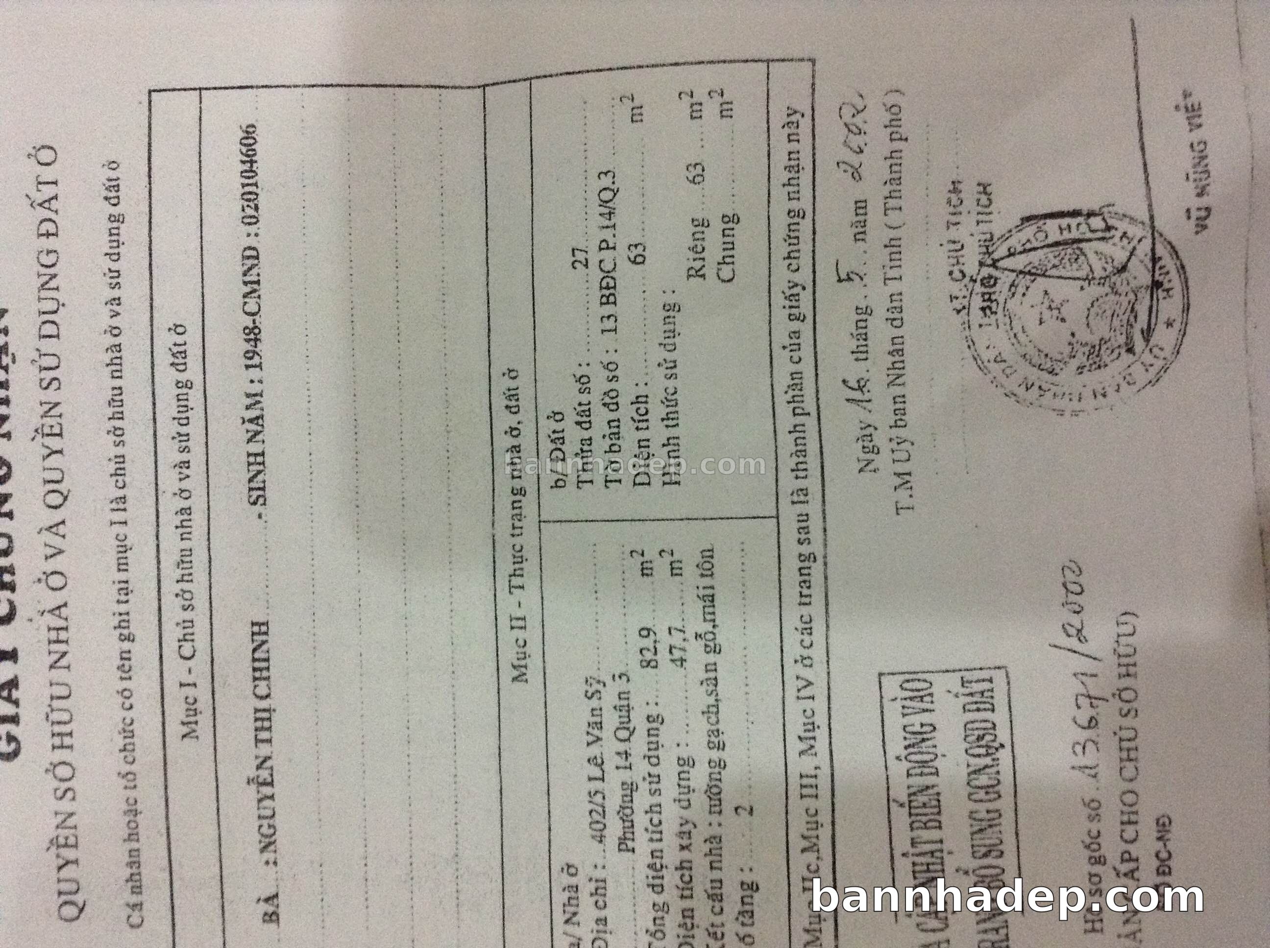 Bán nhà 402/5B Lê Văn Sỹ phường 01 quận 3