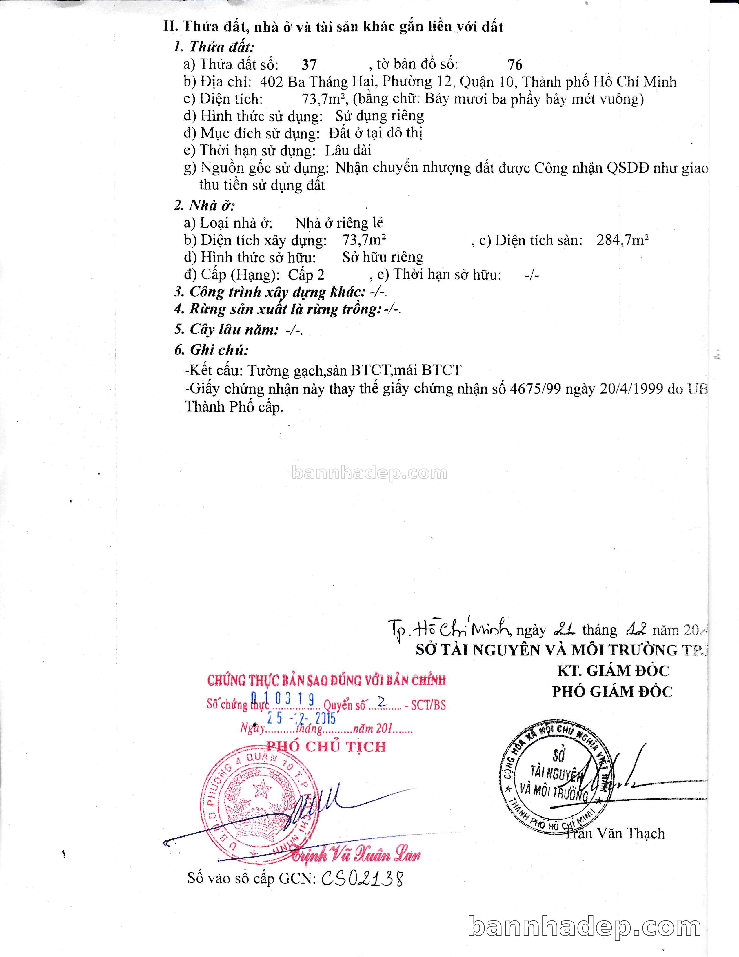 Bán nhà 79CT Tam Đảo phường 01 quận 10