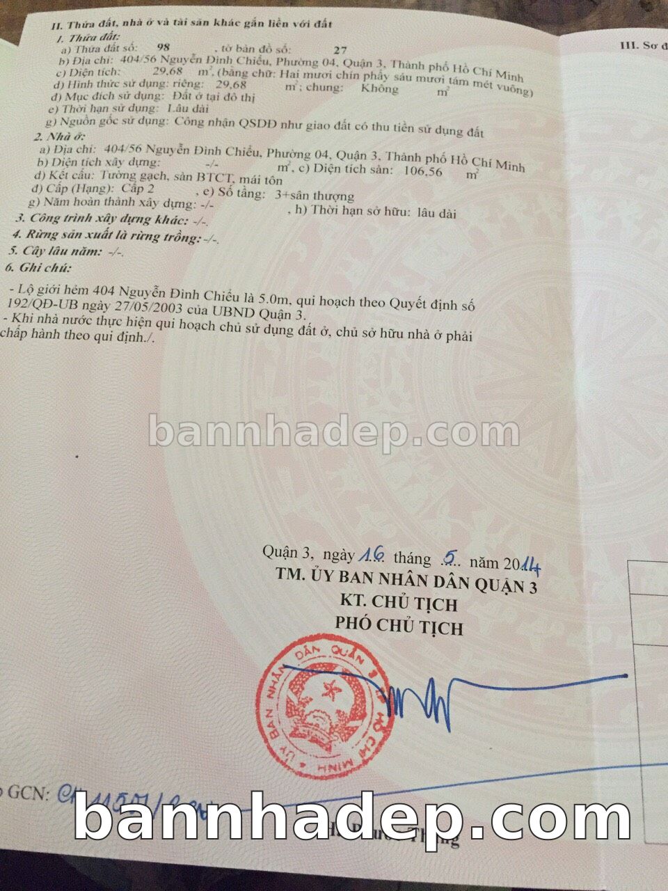 Bán nhà 404/56 Nguyễn Đình Chiểu phường 04 quận 3