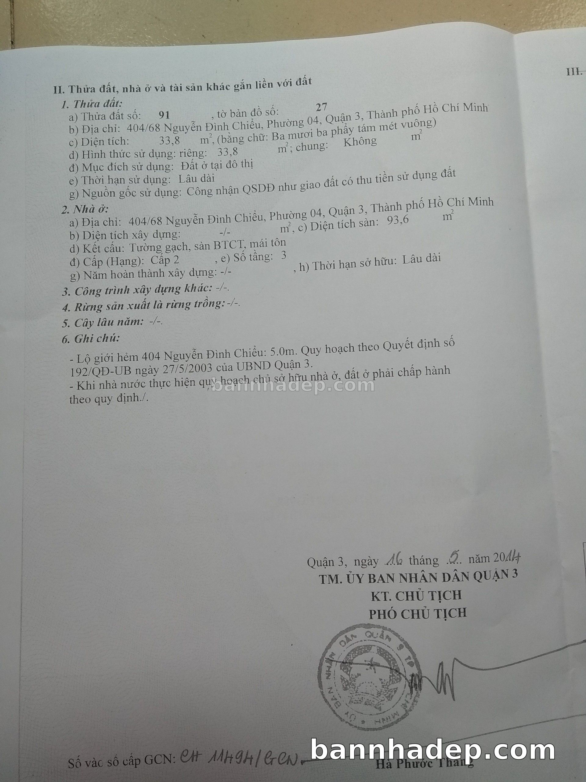 BÁN NHÀ Đường hẻm Số 404/68 Nguyễn Đình Chiểu phường 04 quận 3 TP. Hồ Chí Minh – GẦN CÔNG VIÊN GIẢI TRÍ – GIÁ TỐT Cần bán gấp nhà Đường hẻm tại Số 404/68 Nguyễn Đình Chiểu phường 04 quận 3 TP. Hồ Chí Minh – tiềm năng kinh doanh cao. Thông tin chi tiết: • Địa chỉ: Số 404/68 Nguyễn Đình Chiểu phường 04 quận 3 TP. Hồ Chí Minh • Diện tích: như trong sổ, không gian lý tưởng • Vị trí: Đường hẻm đường Nguyễn Đình Chiểu, gần trung tâm thương mại lớn, khu vực sầm uất, tiềm năng kinh doanh cao • Pháp lý: Sổ hồng riêng, không tranh chấp, sẵn sàng giao dịch • Giá bán: Thoả Thuận (còn thương lượng với khách thiện chí) Lợi thế đặc biệt: • Vị trí trung tâm Quận 3 • Giao thông thuận tiện, kết nối các quận trung tâm • Phù hợp kinh doanh dài hạn, ổn định • Khu vực sầm uất, tiềm năng kinh doanh tốt