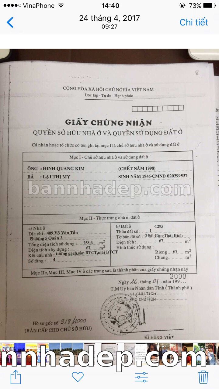 Bán nhà 409 Võ Văn Tần phường 05 quận 3