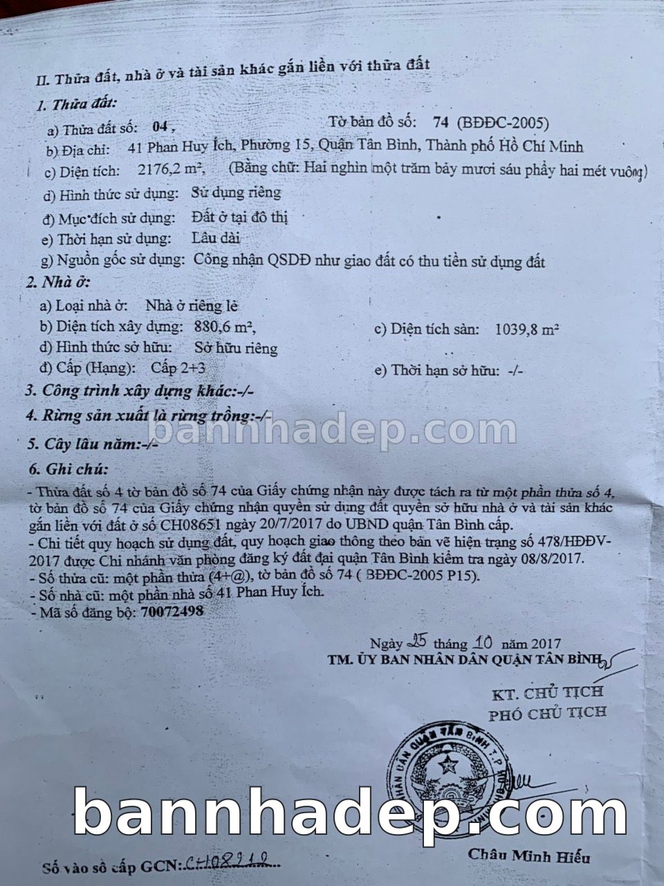BÁN NHÀ Mặt tiền Số 41 Phan Huy Ích phường 01 quận Tân Bình TP. Hồ Chí Minh – GẦN CÔNG VIÊN GIẢI TRÍ – GIÁ TỐT Cần bán gấp nhà Mặt tiền tại Số 41 Phan Huy Ích phường 01 quận Tân Bình TP. Hồ Chí Minh – tiềm năng kinh doanh cao. Thông tin chi tiết: • Địa chỉ: Số 41 Phan Huy Ích phường 01 quận Tân Bình TP. Hồ Chí Minh • Diện tích: như trong sổ, không gian lý tưởng • Vị trí: Mặt tiền đường Phan Huy Ích, gần trung tâm thương mại lớn, khu vực sầm uất, tiềm năng kinh doanh cao • Pháp lý: Sổ hồng riêng, không tranh chấp, sẵn sàng giao dịch • Giá bán: Thoả Thuận (còn thương lượng với khách thiện chí) Lợi thế đặc biệt: • Vị trí trung tâm Quận Tân Bình • Giao thông thuận tiện, kết nối các quận trung tâm • Phù hợp kinh doanh dài hạn, ổn định • Khu vực sầm uất, tiềm năng kinh doanh tốt