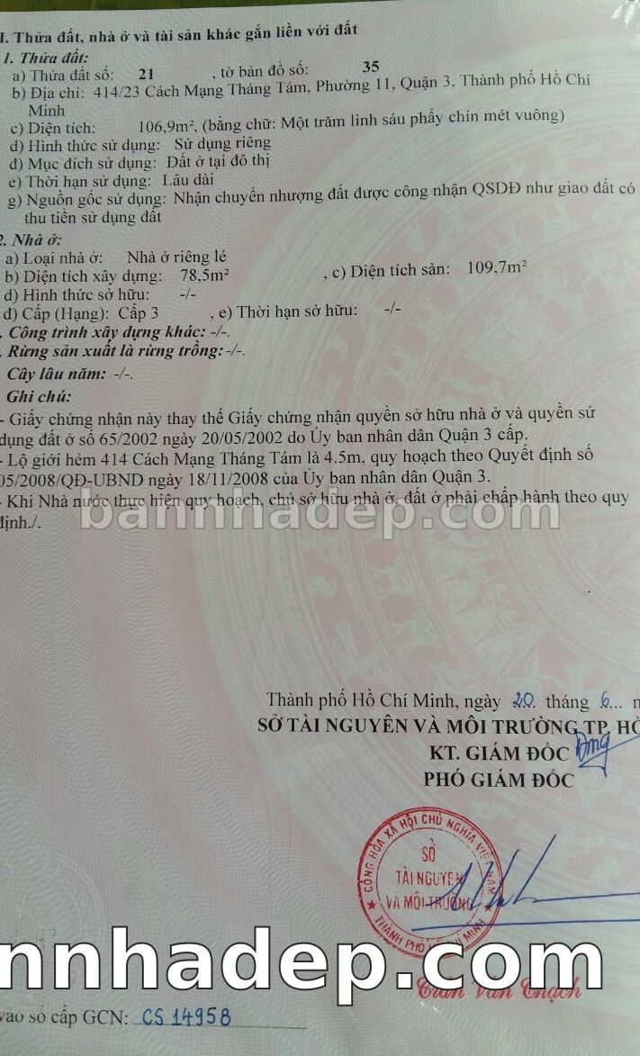 BÁN NHÀ Đường hẻm Số 414/23 Cách Mạng Tháng Tám phường 01 quận 3 TP. Hồ Chí Minh – GẦN CÔNG VIÊN GIẢI TRÍ – GIÁ TỐT Cần bán gấp nhà Đường hẻm tại Số 414/23 Cách Mạng Tháng Tám phường 01 quận 3 TP. Hồ Chí Minh – tiềm năng kinh doanh cao. Thông tin chi tiết: • Địa chỉ: Số 414/23 Cách Mạng Tháng Tám phường 01 quận 3 TP. Hồ Chí Minh • Diện tích: như trong sổ, không gian lý tưởng • Vị trí: Đường hẻm đường Cách Mạng Tháng Tám, gần trung tâm thương mại lớn, khu vực sầm uất, tiềm năng kinh doanh cao • Pháp lý: Sổ hồng riêng, không tranh chấp, sẵn sàng giao dịch • Giá bán: Thoả Thuận (còn thương lượng với khách thiện chí) Lợi thế đặc biệt: • Vị trí trung tâm Quận 3 • Giao thông thuận tiện, kết nối các quận trung tâm • Phù hợp kinh doanh dài hạn, ổn định • Khu vực sầm uất, tiềm năng kinh doanh tốt