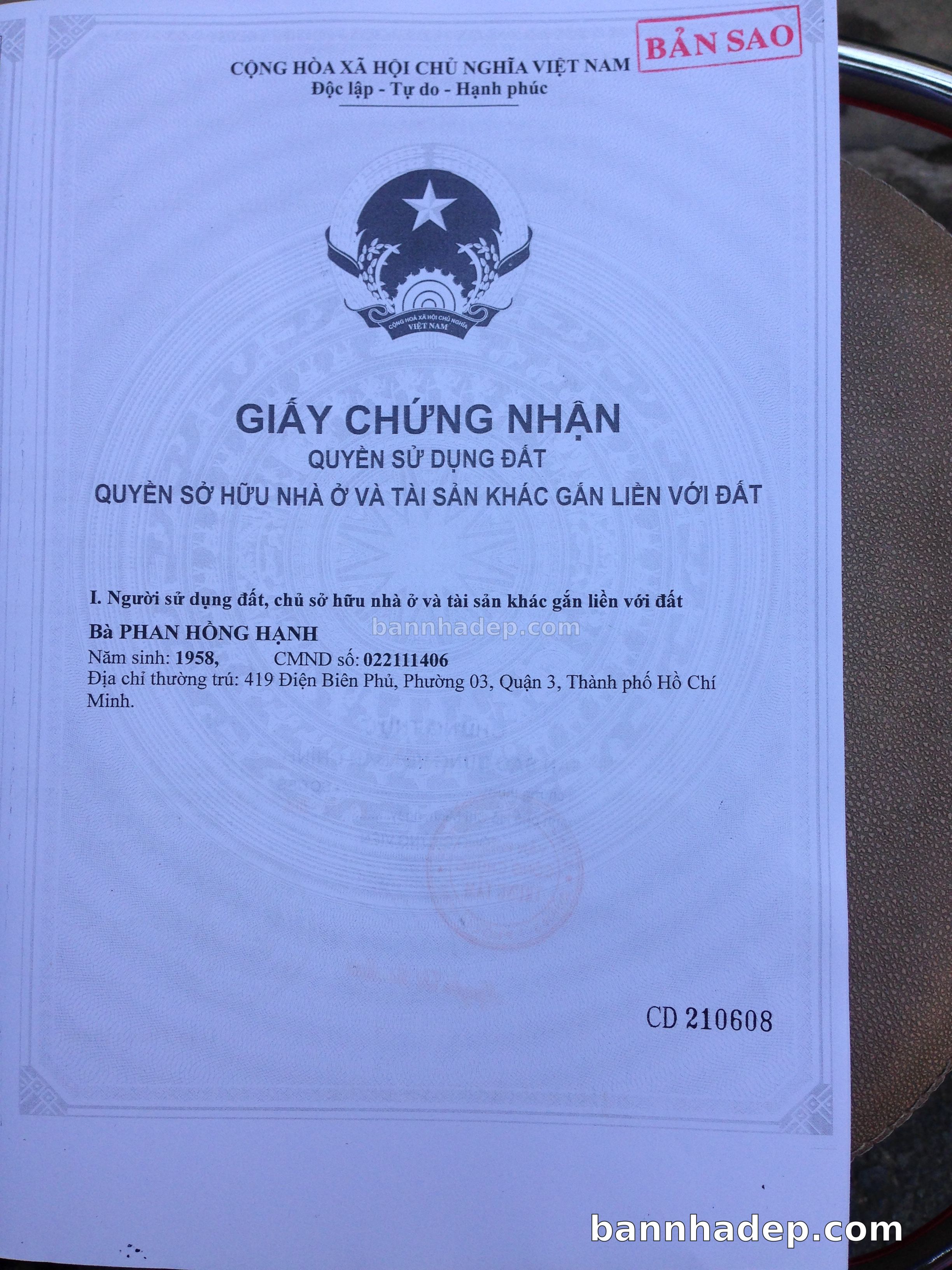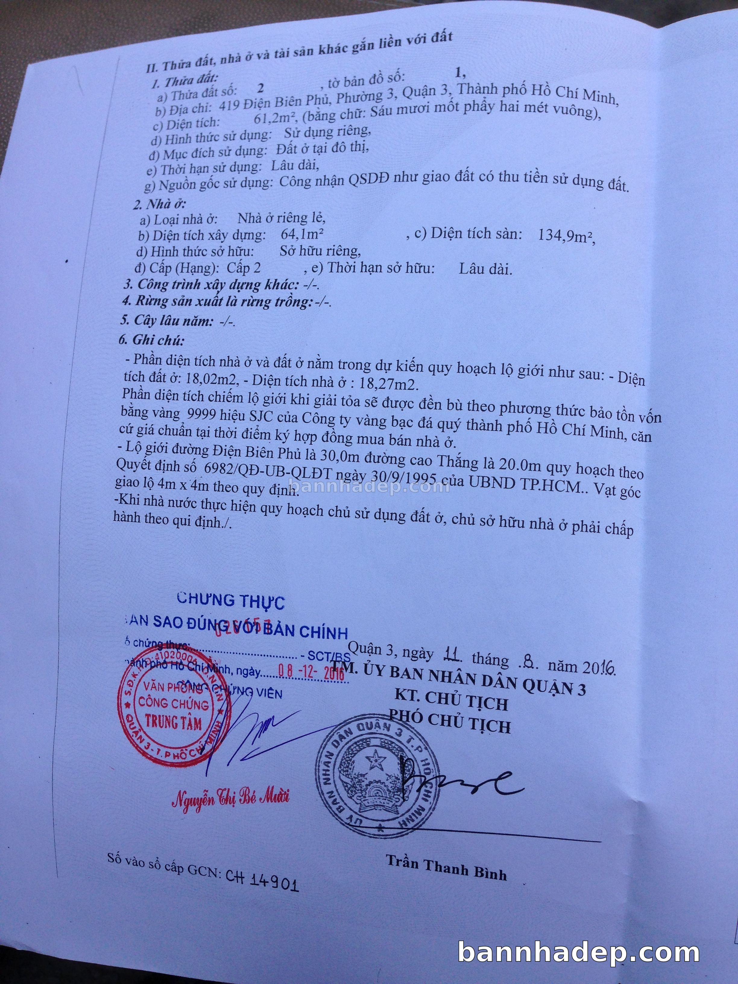 BÁN NHÀ Mặt tiền Số 419 Điện Biên Phủ phường 03 quận 3 TP. Hồ Chí Minh – GẦN CÔNG VIÊN GIẢI TRÍ – GIÁ TỐT Cần bán gấp nhà Mặt tiền tại Số 419 Điện Biên Phủ phường 03 quận 3 TP. Hồ Chí Minh – tiềm năng kinh doanh cao. Thông tin chi tiết: • Địa chỉ: Số 419 Điện Biên Phủ phường 03 quận 3 TP. Hồ Chí Minh • Diện tích: như trong sổ, không gian lý tưởng • Vị trí: Mặt tiền đường Điện Biên Phủ, gần trung tâm thương mại lớn, khu vực sầm uất, tiềm năng kinh doanh cao • Pháp lý: Sổ hồng riêng, không tranh chấp, sẵn sàng giao dịch • Giá bán: Thoả Thuận (còn thương lượng với khách thiện chí) Lợi thế đặc biệt: • Vị trí trung tâm Quận 3 • Giao thông thuận tiện, kết nối các quận trung tâm • Phù hợp kinh doanh dài hạn, ổn định • Khu vực sầm uất, tiềm năng kinh doanh tốt