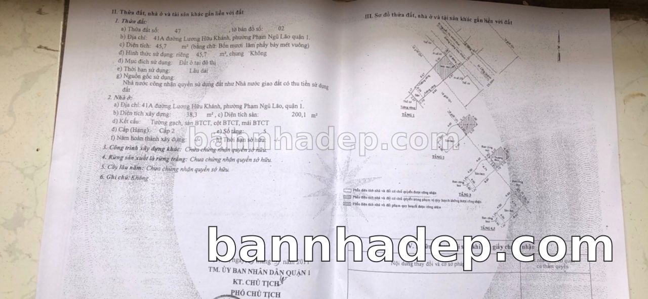 BÁN NHÀ Mặt tiền Số 41A Lương Hữu Khánh phường Phạm Ngũ Lão quận 1 TP. Hồ Chí Minh – GẦN CÔNG VIÊN GIẢI TRÍ – GIÁ TỐT Cần bán gấp nhà Mặt tiền tại Số 41A Lương Hữu Khánh phường Phạm Ngũ Lão quận 1 TP. Hồ Chí Minh – tiềm năng kinh doanh cao. Thông tin chi tiết: • Địa chỉ: Số 41A Lương Hữu Khánh phường Phạm Ngũ Lão quận 1 TP. Hồ Chí Minh • Diện tích: như trong sổ, không gian lý tưởng • Vị trí: Mặt tiền đường Lương Hữu Khánh, gần trung tâm thương mại lớn, khu vực sầm uất, tiềm năng kinh doanh cao • Pháp lý: Sổ hồng riêng, không tranh chấp, sẵn sàng giao dịch • Giá bán: Thoả Thuận (còn thương lượng với khách thiện chí) Lợi thế đặc biệt: • Vị trí trung tâm Quận 1 • Giao thông thuận tiện, kết nối các quận trung tâm • Phù hợp kinh doanh dài hạn, ổn định • Khu vực sầm uất, tiềm năng kinh doanh tốt