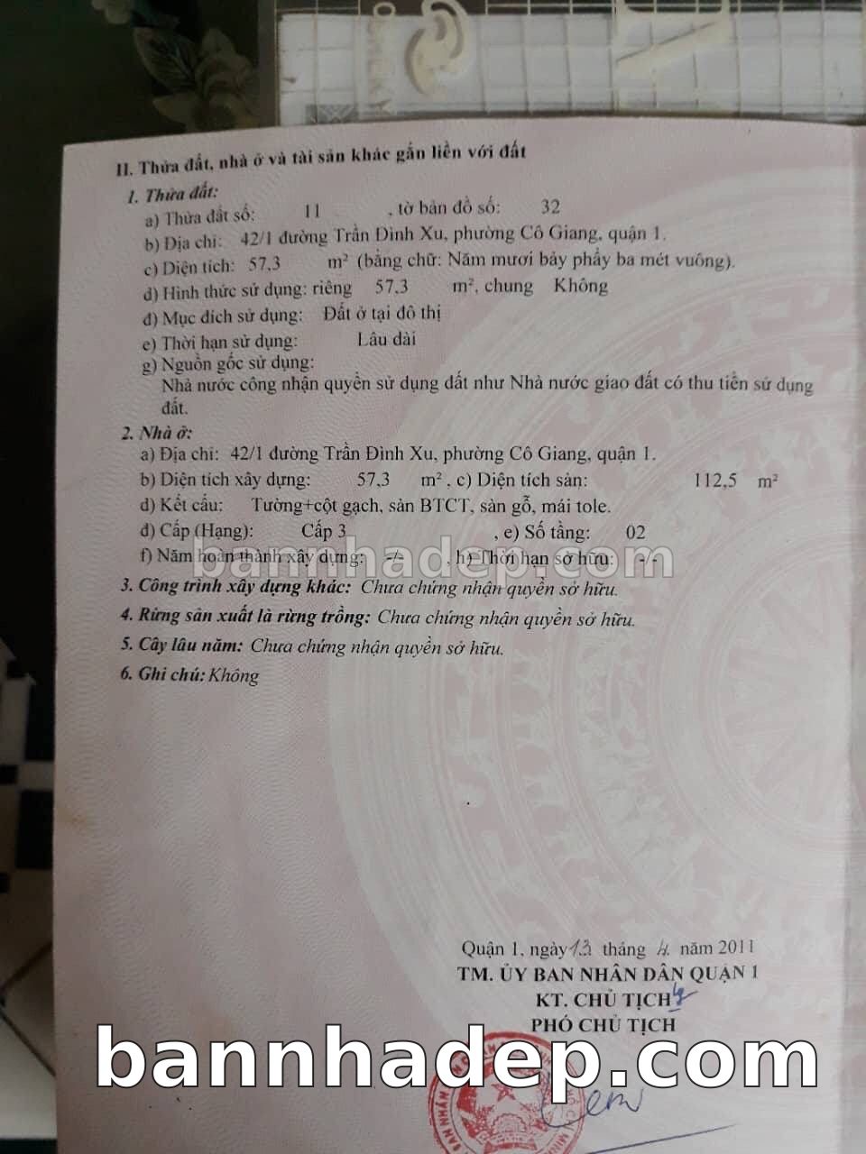 BÁN NHÀ Đường hẻm Số 42/1 Trần Đình Xu phường Cô Giang quận 1 TP. Hồ Chí Minh – GẦN CÔNG VIÊN GIẢI TRÍ – GIÁ TỐT Cần bán gấp nhà Đường hẻm tại Số 42/1 Trần Đình Xu phường Cô Giang quận 1 TP. Hồ Chí Minh – tiềm năng kinh doanh cao. Thông tin chi tiết: • Địa chỉ: Số 42/1 Trần Đình Xu phường Cô Giang quận 1 TP. Hồ Chí Minh • Diện tích: như trong sổ, không gian lý tưởng • Vị trí: Đường hẻm đường Trần Đình Xu, gần trung tâm thương mại lớn, khu vực sầm uất, tiềm năng kinh doanh cao • Pháp lý: Sổ hồng riêng, không tranh chấp, sẵn sàng giao dịch • Giá bán: Thoả Thuận (còn thương lượng với khách thiện chí) Lợi thế đặc biệt: • Vị trí trung tâm Quận 1 • Giao thông thuận tiện, kết nối các quận trung tâm • Phù hợp kinh doanh dài hạn, ổn định • Khu vực sầm uất, tiềm năng kinh doanh tốt