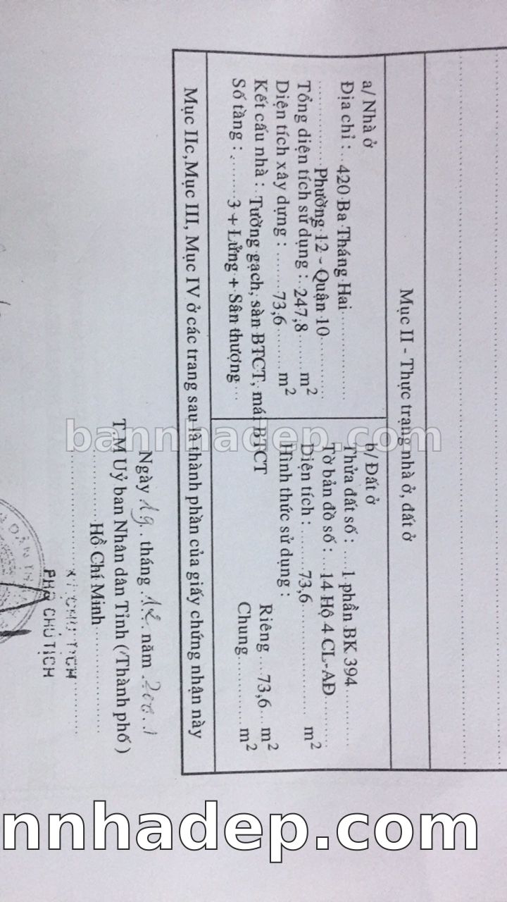 Bán nhà 420 Đường 3 tháng 2 phường 01 quận 10