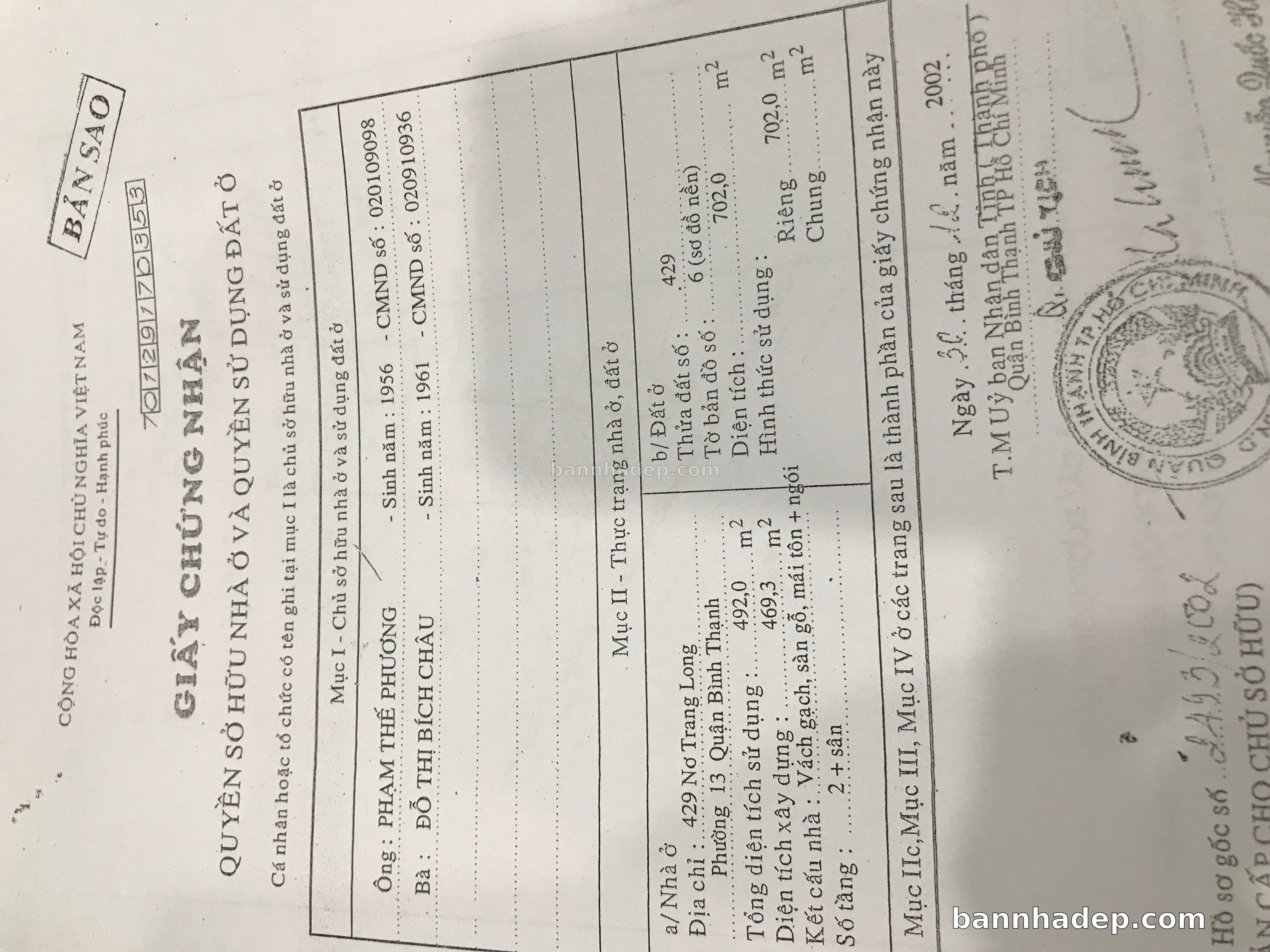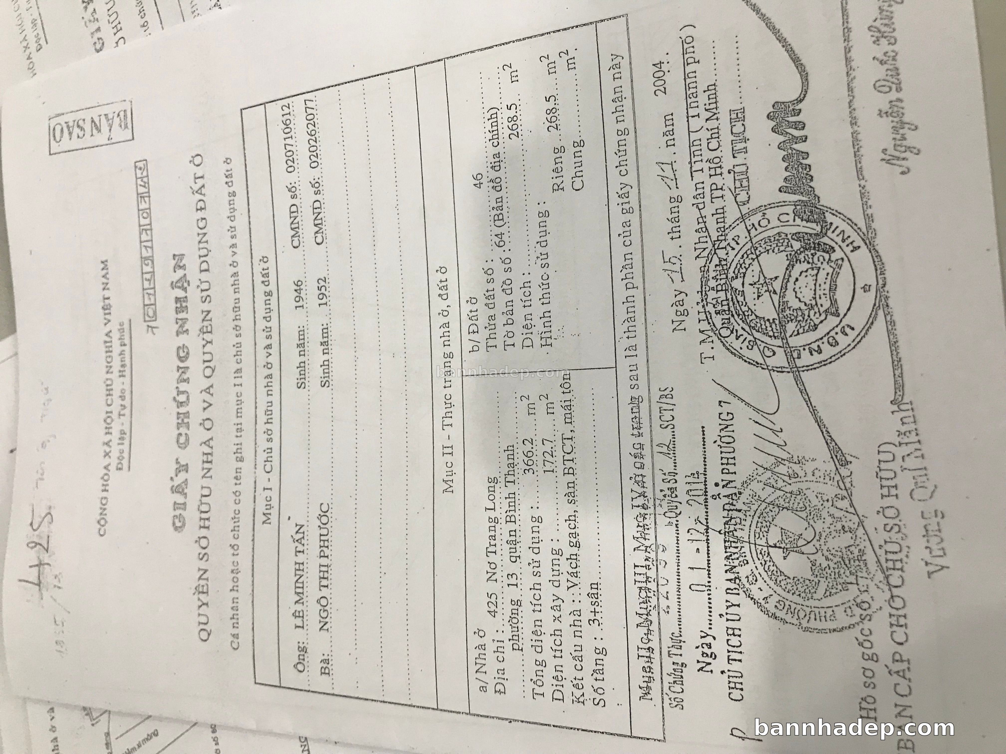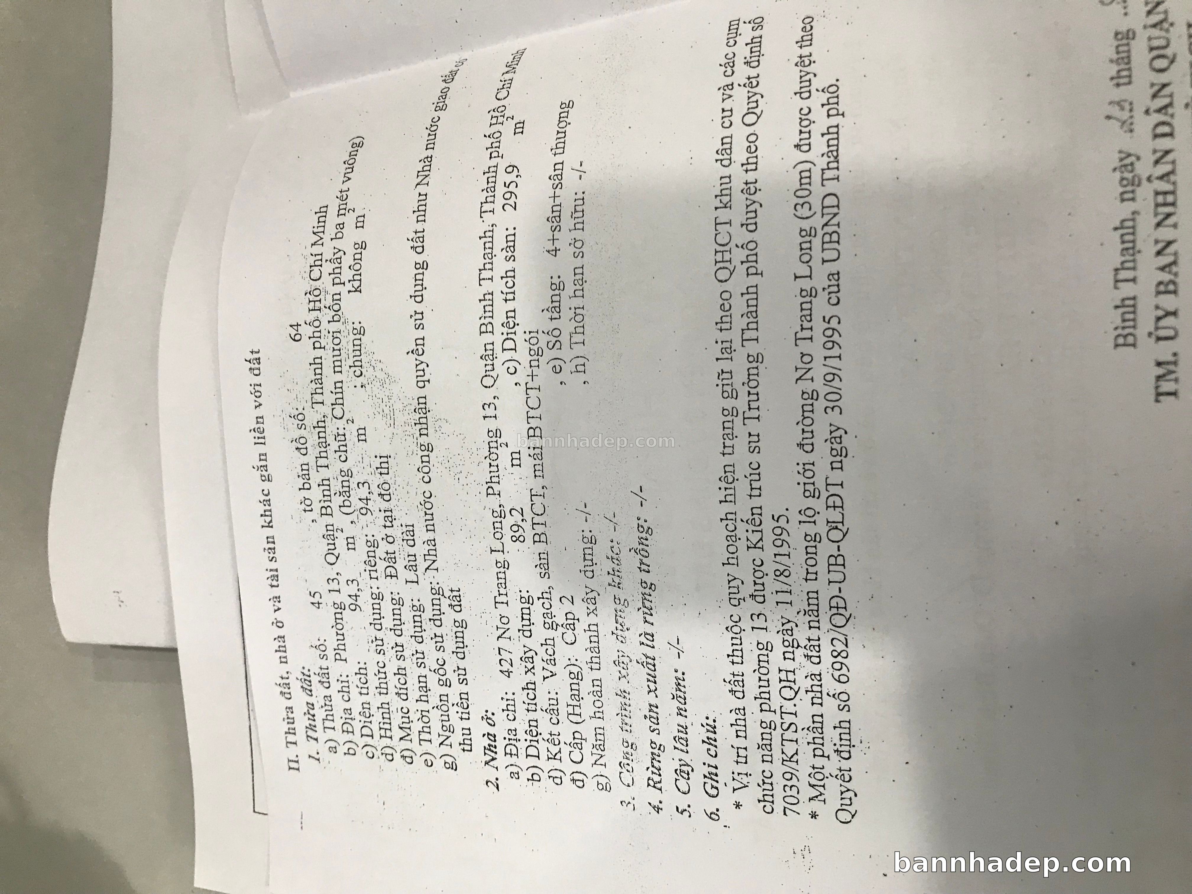 Bán nhà 425-427-429 Nơ Trang Long phường 01 quận Bình Thạnh